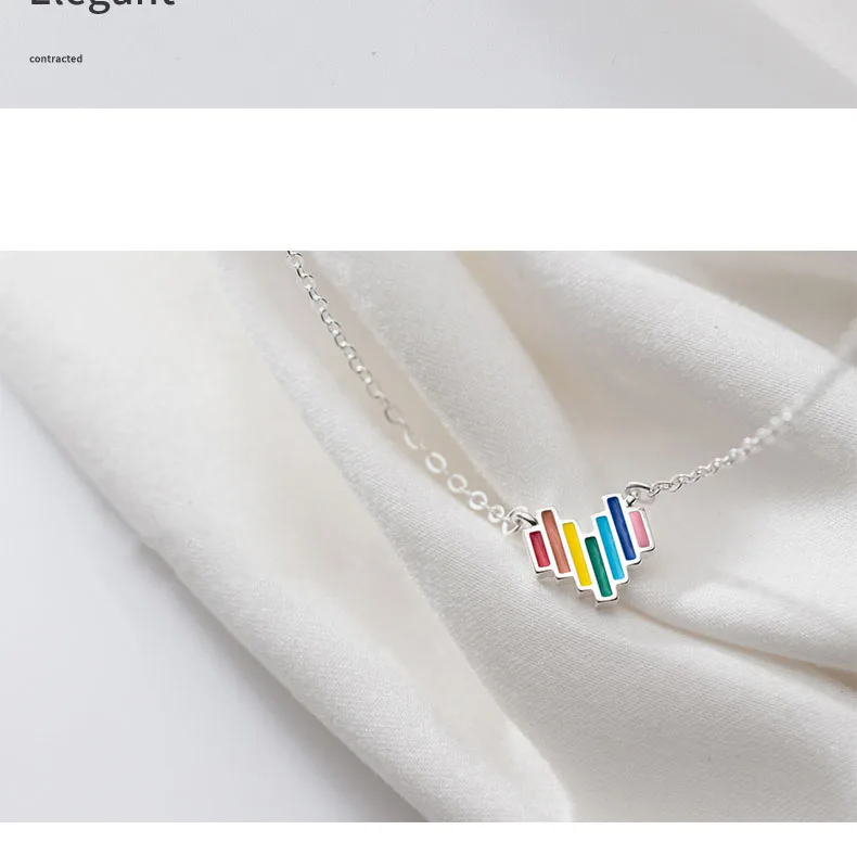 TrustDavis Real 925 Sterling Fashion Sweet Romantic Colour Heart Love Clavicle Necklace For Women Wedding Party Jewelry DA1576