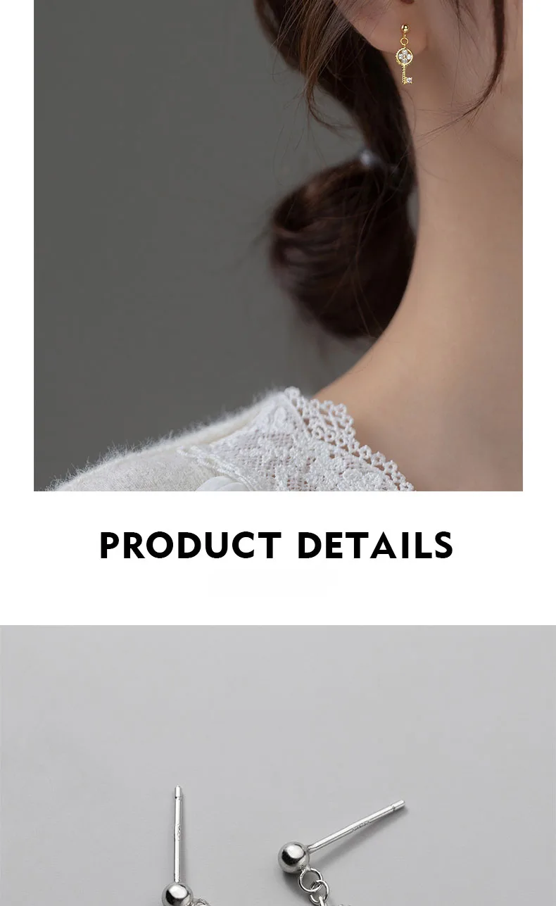 TrustDavis Real 925 Sterling Silver 2022 Asymmetrical Key Lock Shiny CZ Stud Earrings For Fashion Women Fine 925 Jewelry DA00353