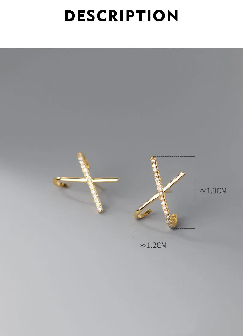 TrustDavis Real 925 Sterling Silver 2022 Jewelry 18k Gold Cross CZ Stud Earrings for Wedding Party Gift Fine 925 Jewelry DE0027
