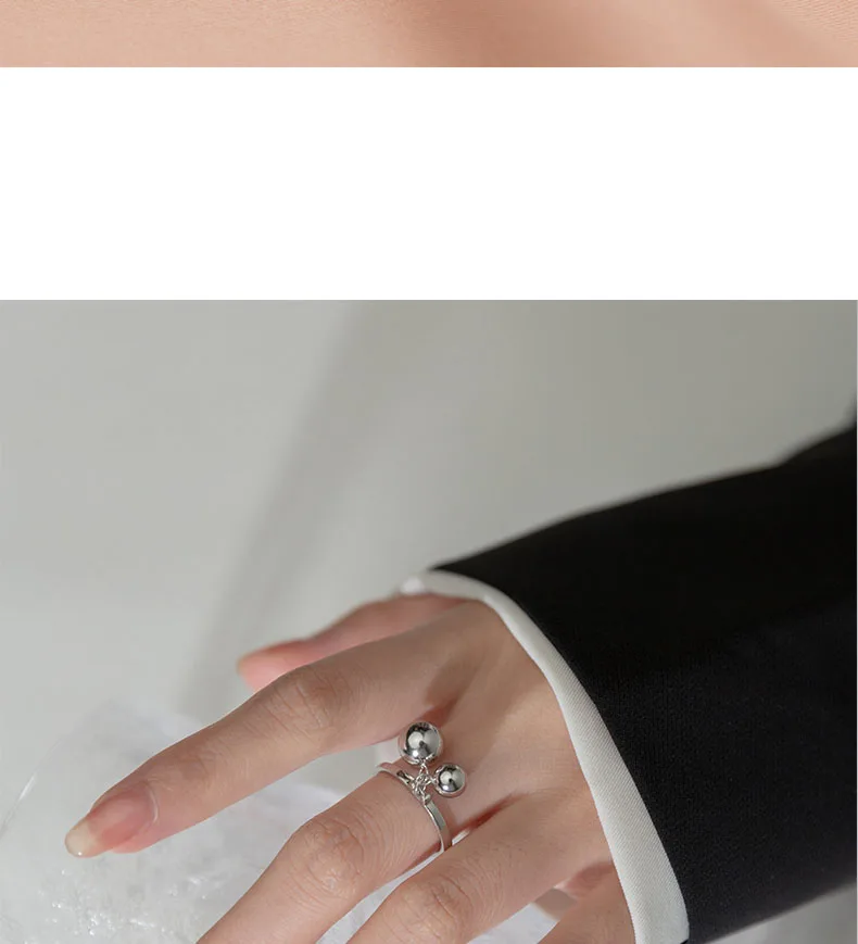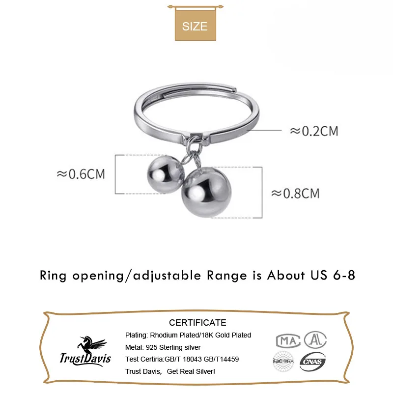 TrustDavis Real 925 Sterling Silver 2022 Sweet Small Big Beads Opening Ring For Fashion Women Wedding Party Fine Jewelry DE0131