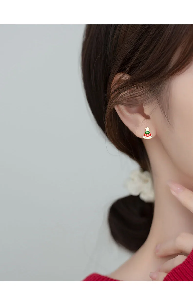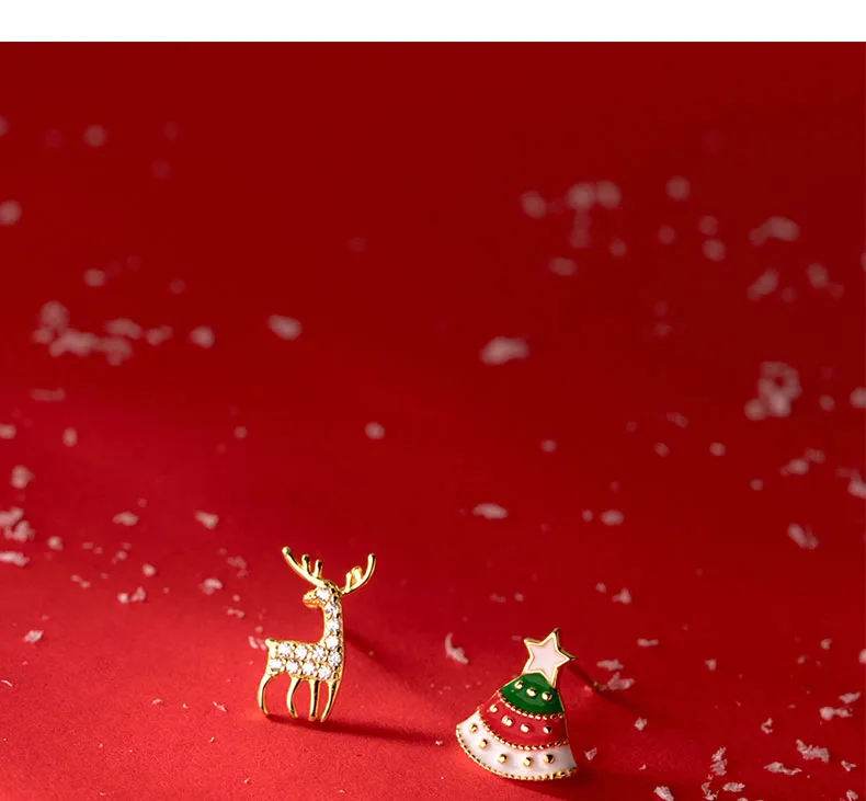 TrustDavis Real 925 Sterling Silver Asymmetric Christmas Trees Deer Stud Earrings For Women Christmas Presents Jewelry DS3363