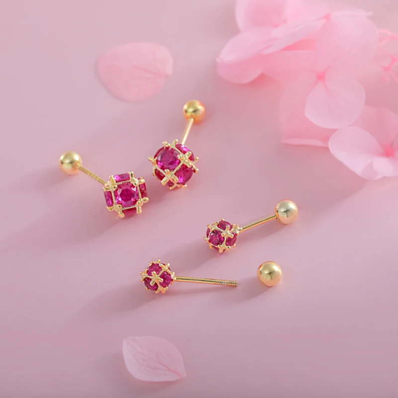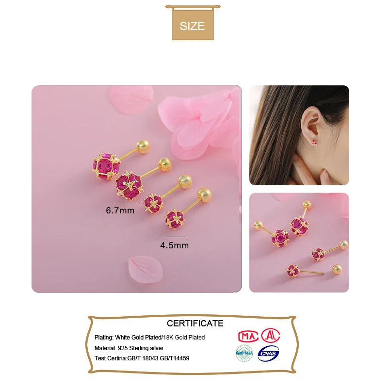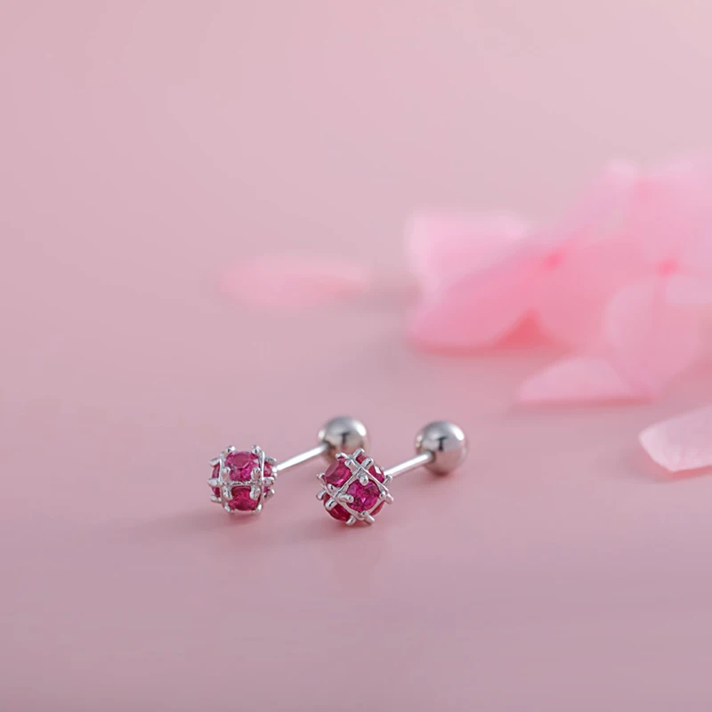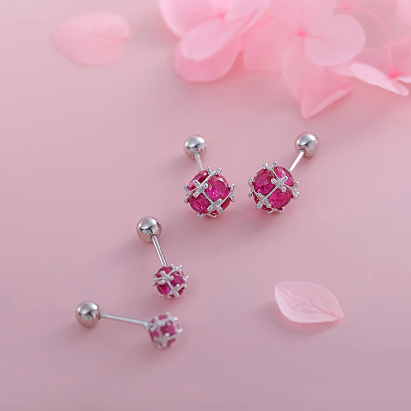 TrustDavis Real 925 Sterling Silver Ball Red CZ Screw Beads Stud Earrings For Women Children Baby Girls Minimalist Jewelry H080