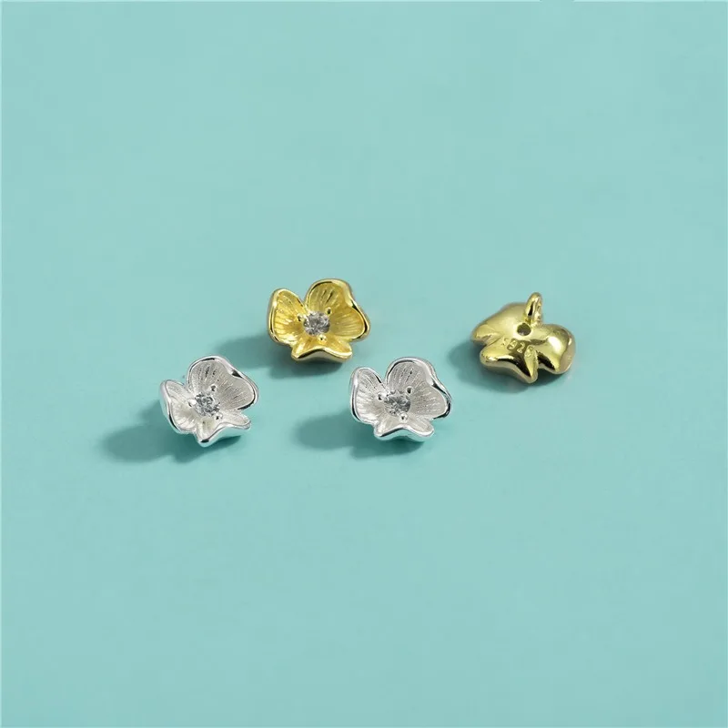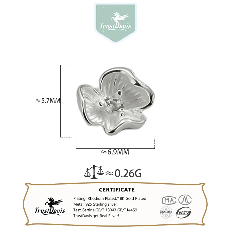 TrustDavis Real 925 Sterling Silver Bracelet Necklace Fashion Zircon Petal Separator Beads DIY Accessories Jewelry Gift DZ1793