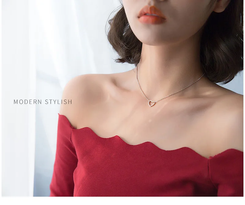 TrustDavis Real 925 Sterling Silver Clavicle Necklaces For Women Wedding Party Romantic Heart Love 925 Necklace Jewelry DS464