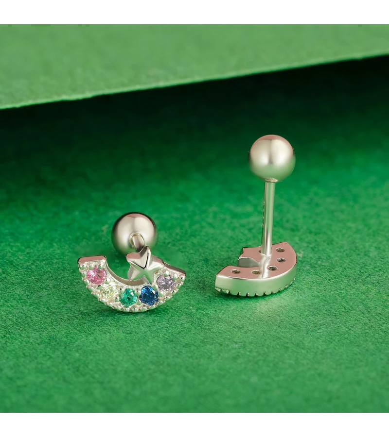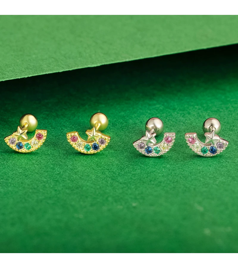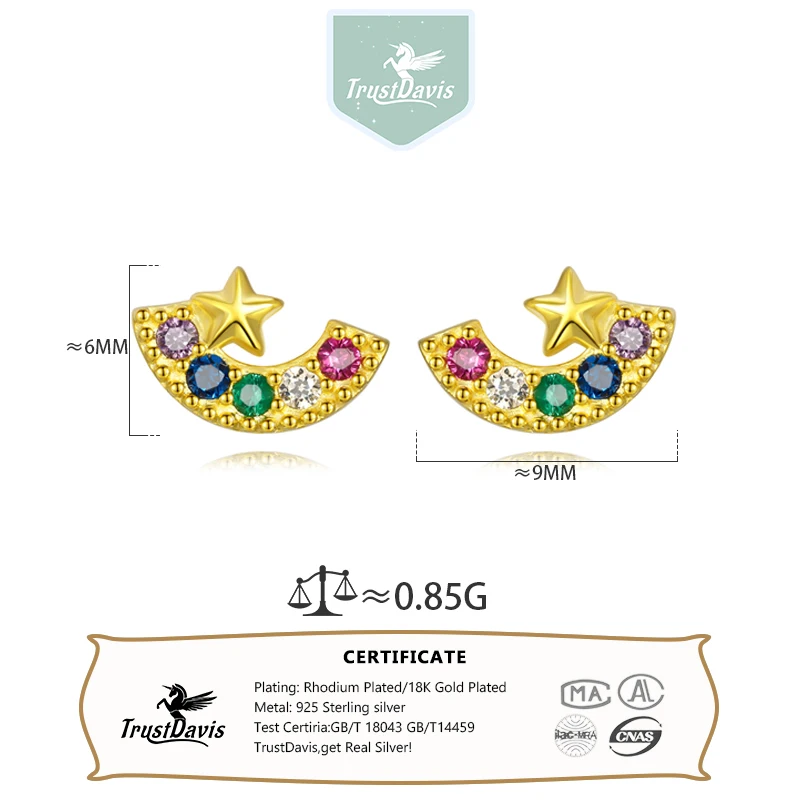 Trustdavis Real 925 Sterling Silver Colored Zircon Star Stud Earrings Women Mum Daughter Birthday Party Gift Jewelry DS4383