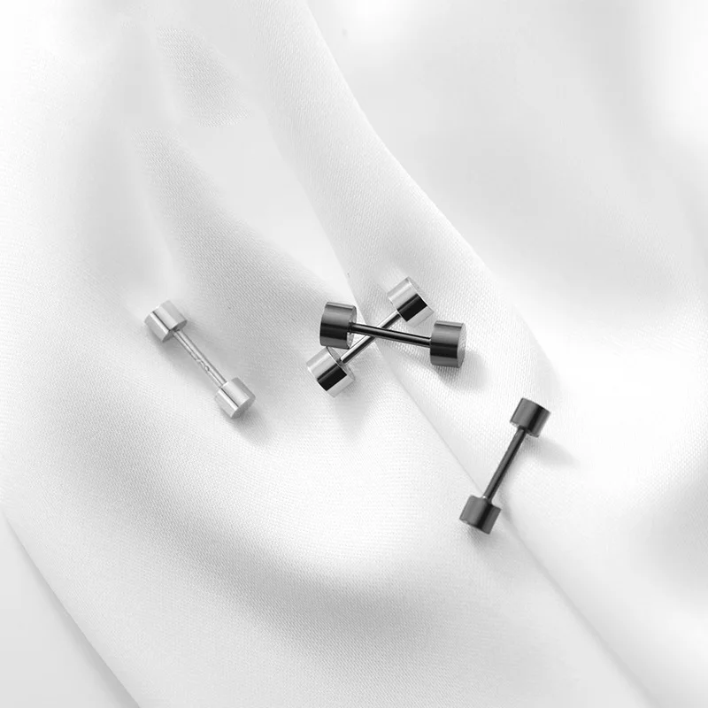 Real 925 Sterling Silver Cute Geometric Round Barbells Screw Earrings DA2001