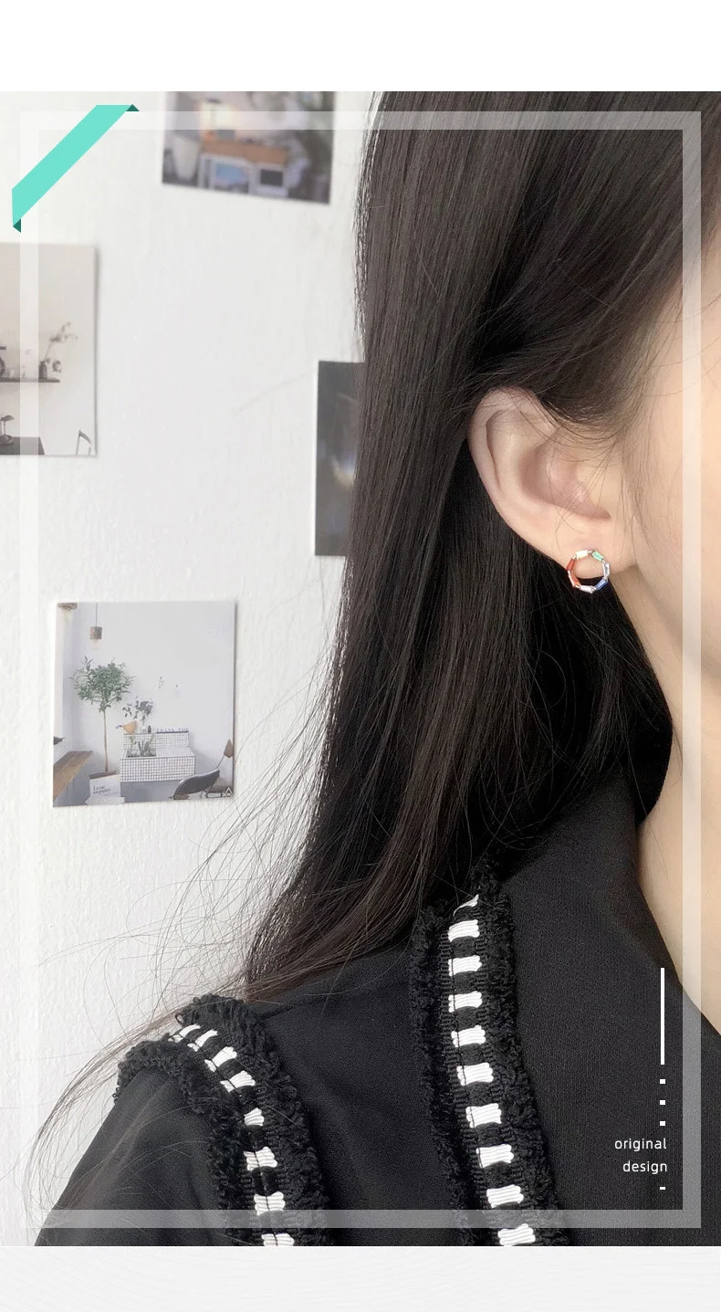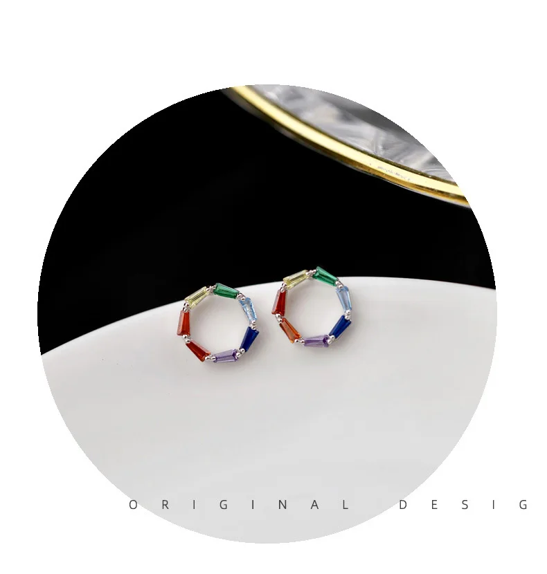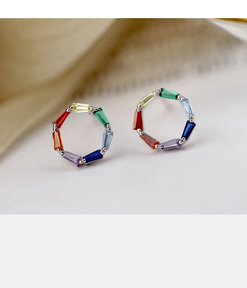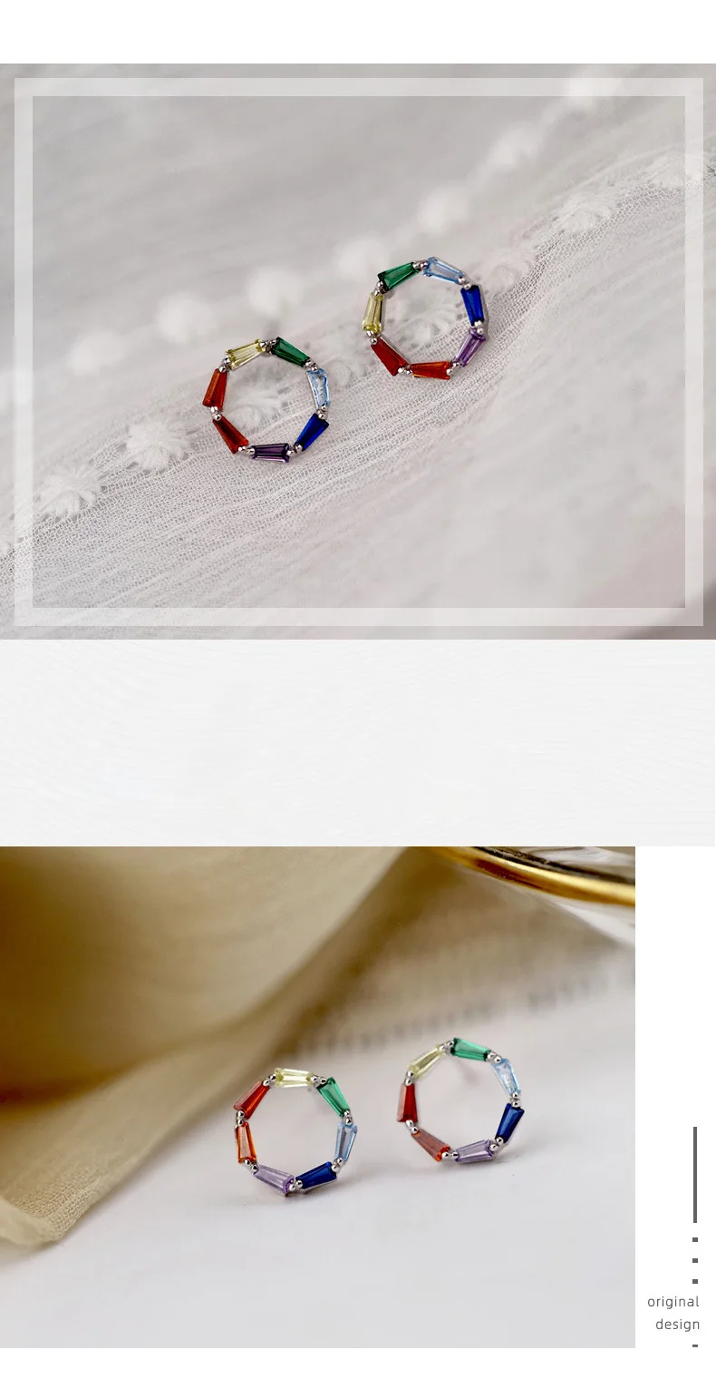 TrustDavis Real 925 Sterling Silver Earring Colorful CZ Stud Earrings for Women Teen 925 Silver Fine Jewelry DS3435
