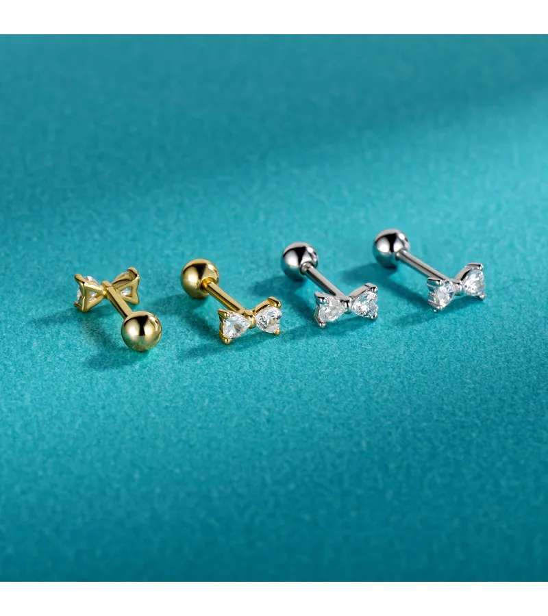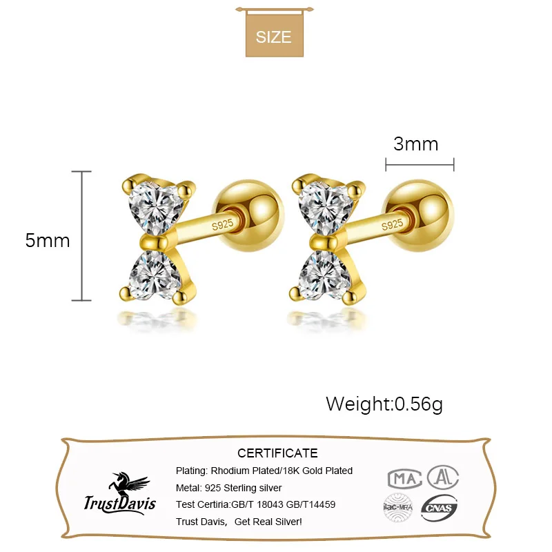 TrustDavis Real 925 Sterling Silver Earring Fashion Bowknot Shiny CZ Screw Stud Earrings For Daughter Girls Fine Jewelry DA3166