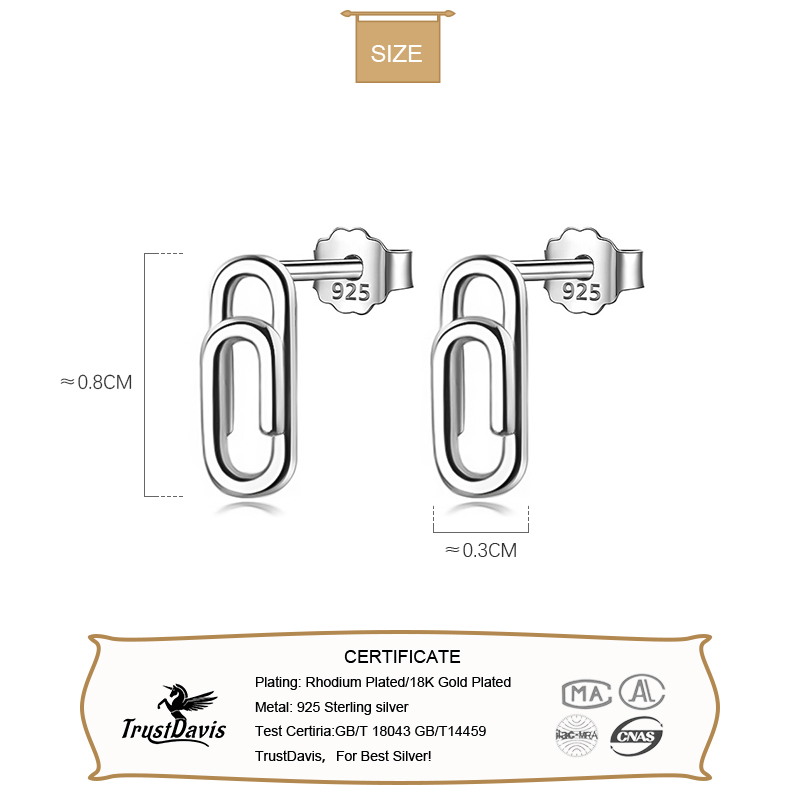 Mini Paper Clip Stud Earring for Women Wedding Party Fine Jewelry DA2616