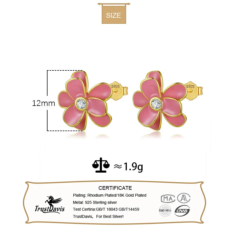 Trustdavis Real 925 Sterling Silver Earrings Sweet Colour Flower CZ Stud Earrings For Women Wedding Party Fine Jewelry DF221