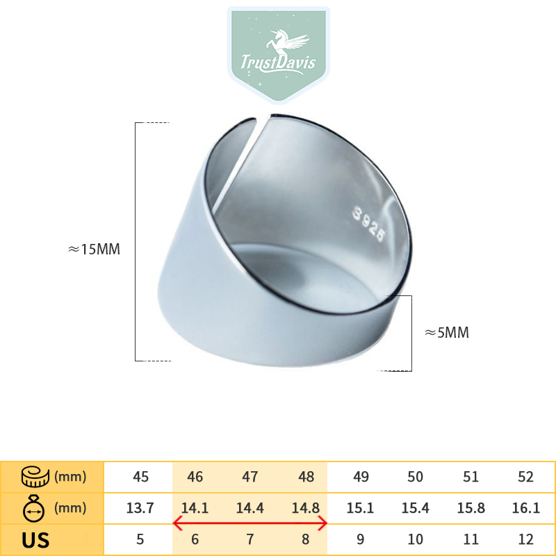 TrustDavis Real 925 Sterling Silver Faishonable and Simple Wide-faced Open Ring for Women/Men Girls Fine Jewelry Gift DS4778
