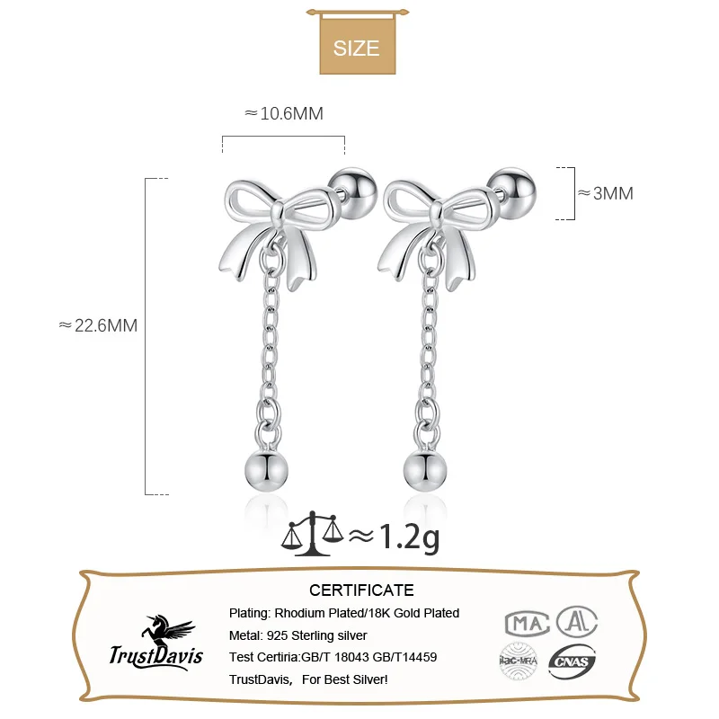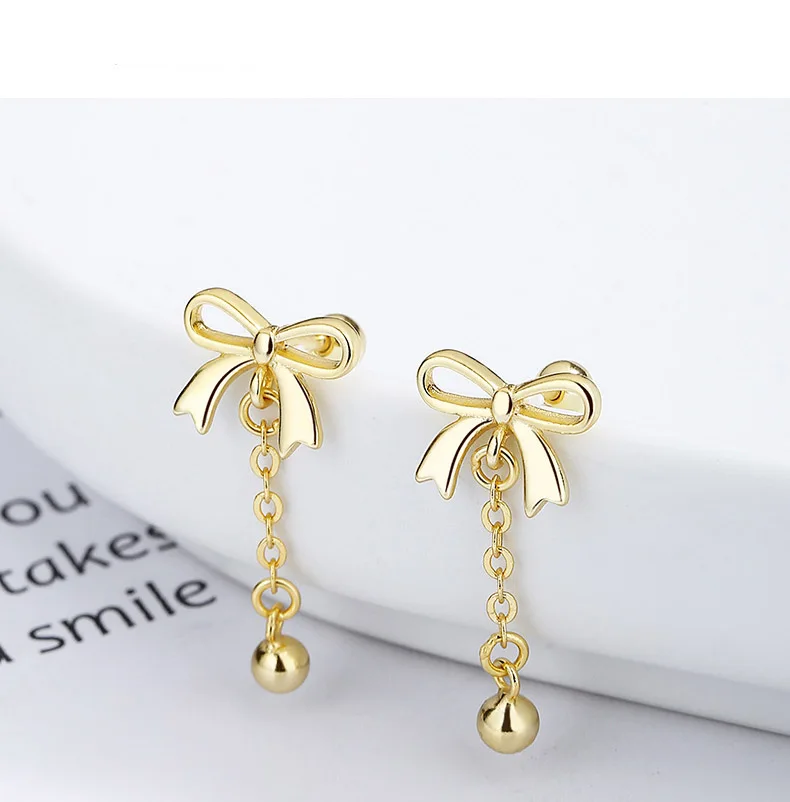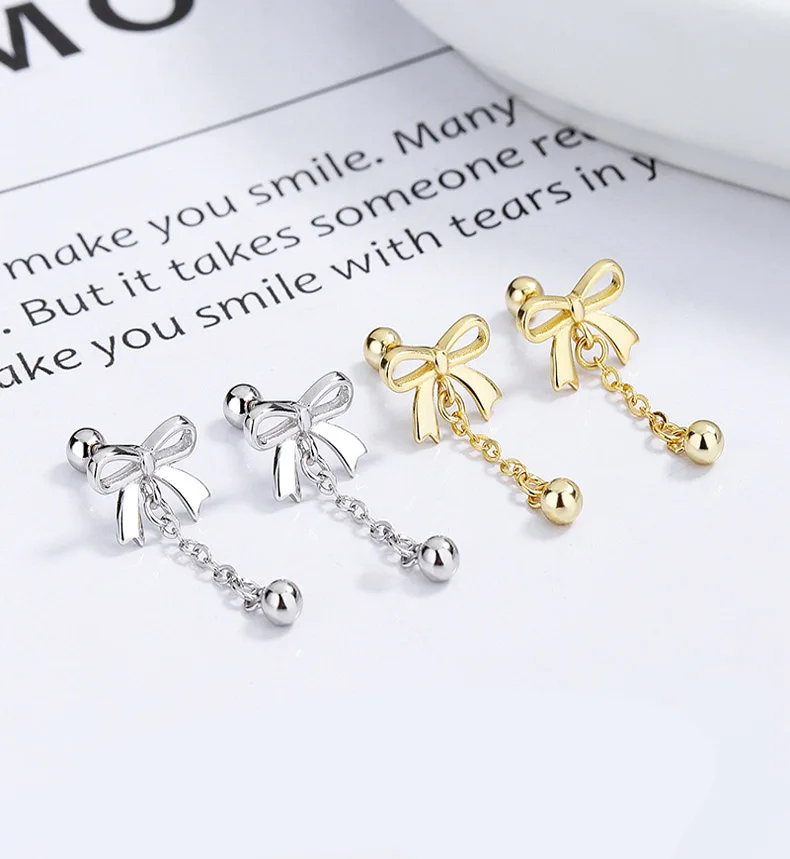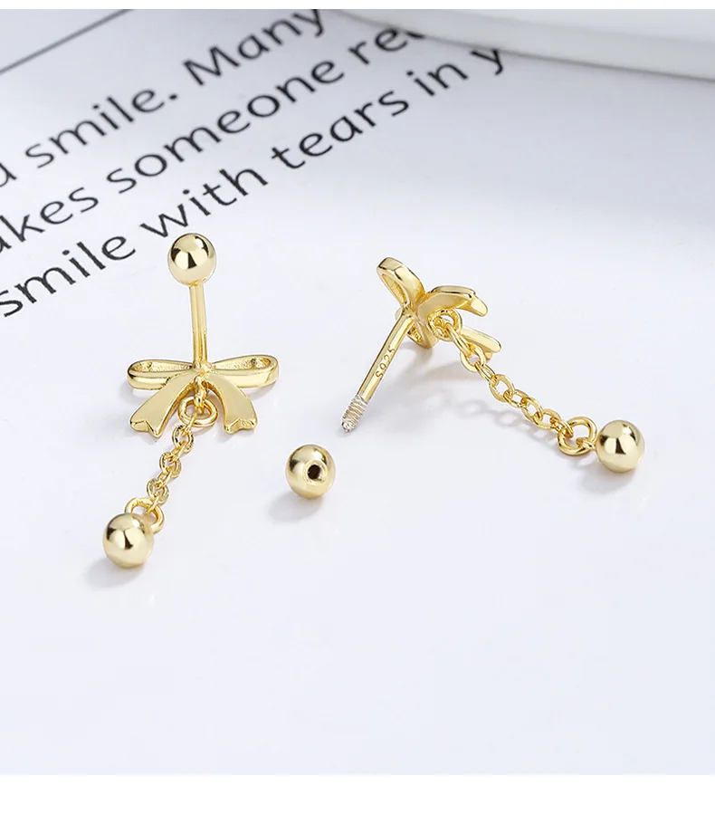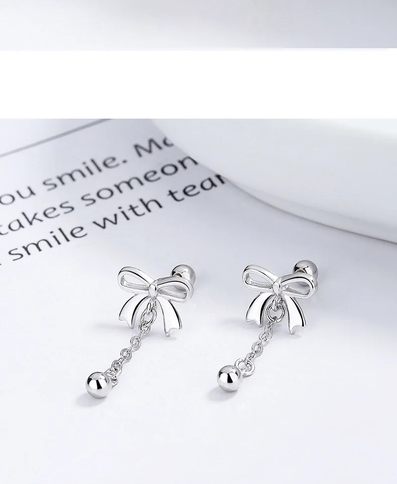 Fashion Bowknot Tassel Beads Screw Stud Earrings DG0138