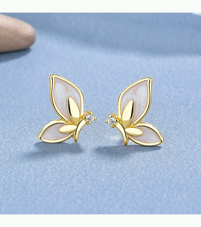 TrustDavis Real 925 Sterling Silver Fashion Butterfly Shiny CZ Stud Earrings For Mum Daughter Birthday Party Gift Jewelry DS4379