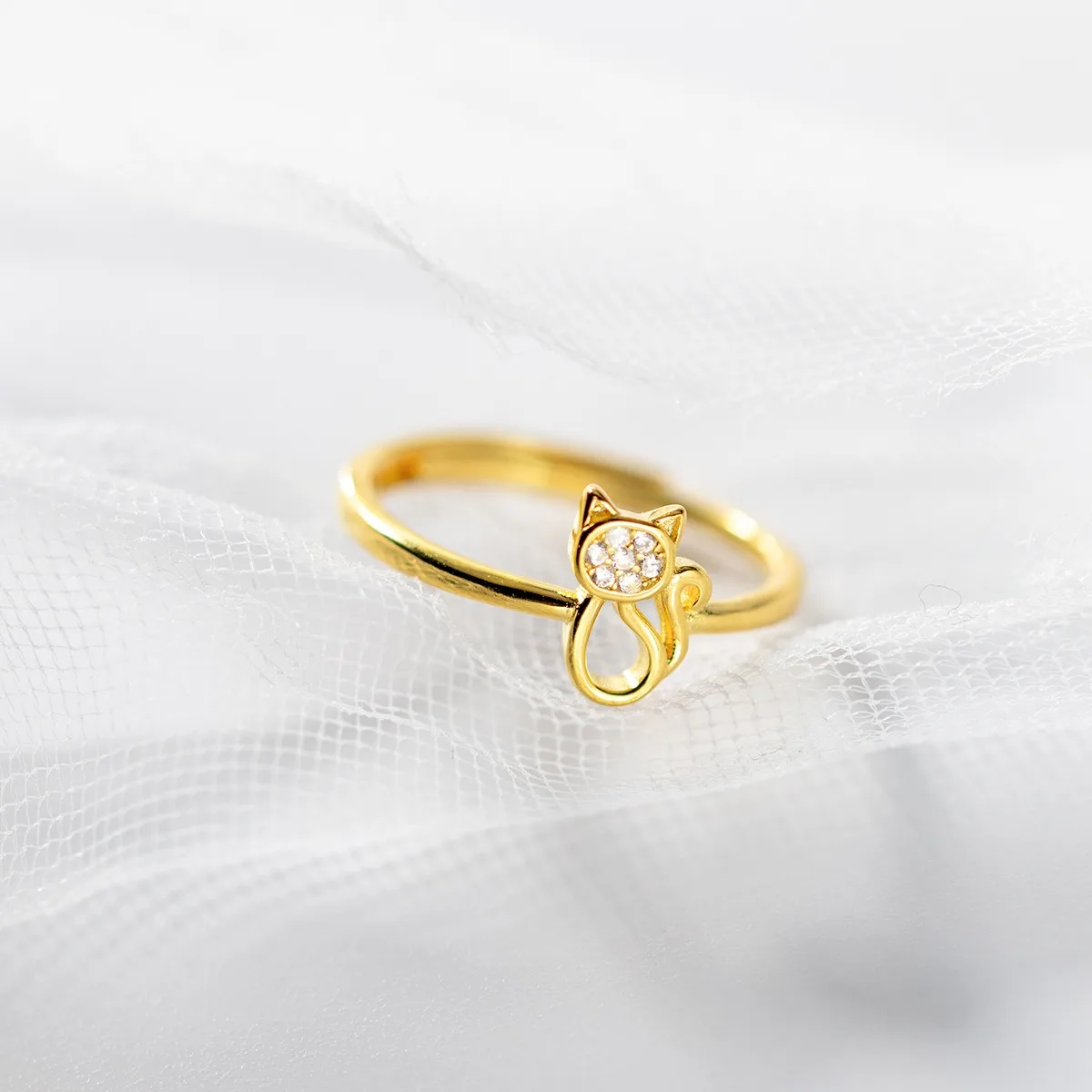 TrustDavis Real 925 Sterling Silver Fashion Cat with Zirconr Ring lAdjustable Ring for Women Wedding Party Fine Jewelry DS4173