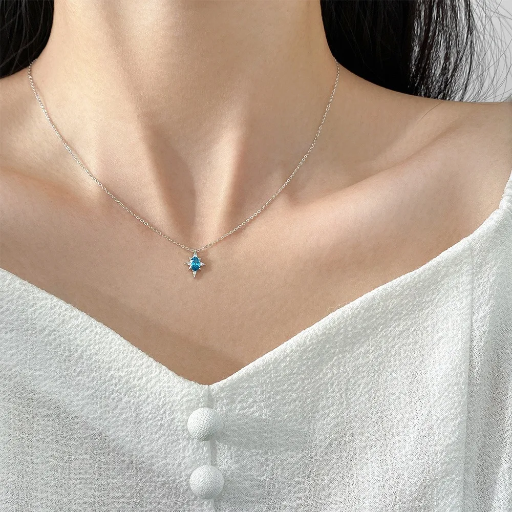 TrustDavis Real 925 Sterling Silver Fashion Charm Eight-pointed Star Necklace for Women Wedding Birthday Fine Jewelry DS4163