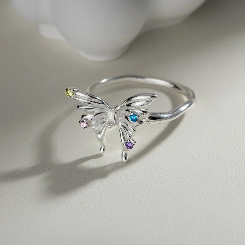 TrustDavis Real 925 Sterling Silver Fashion Color Diamond Butterfly Ring for Women Office Lady Birthday Gift Fine Jewelry DA1638
