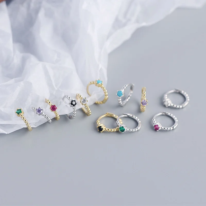 Trustdavis Real 925 Sterling Silver Fashion Colorful Zircon Charming Small Earrings For Women Rock Unisex Party Jewelry DA2645
