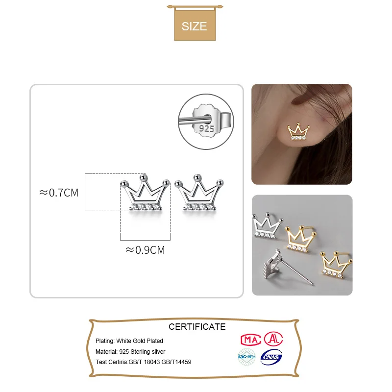 Fashion Cute Queen's Crown CZ Stud Earring DA025