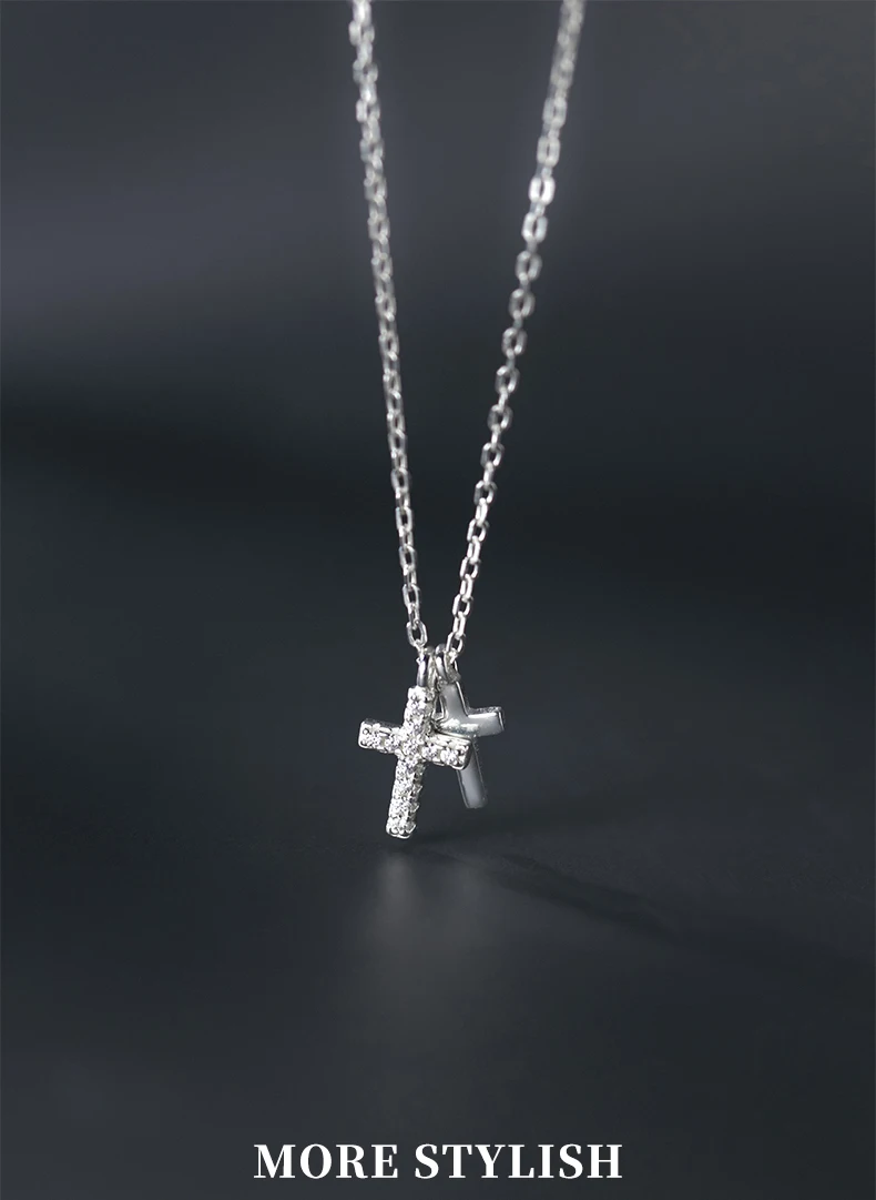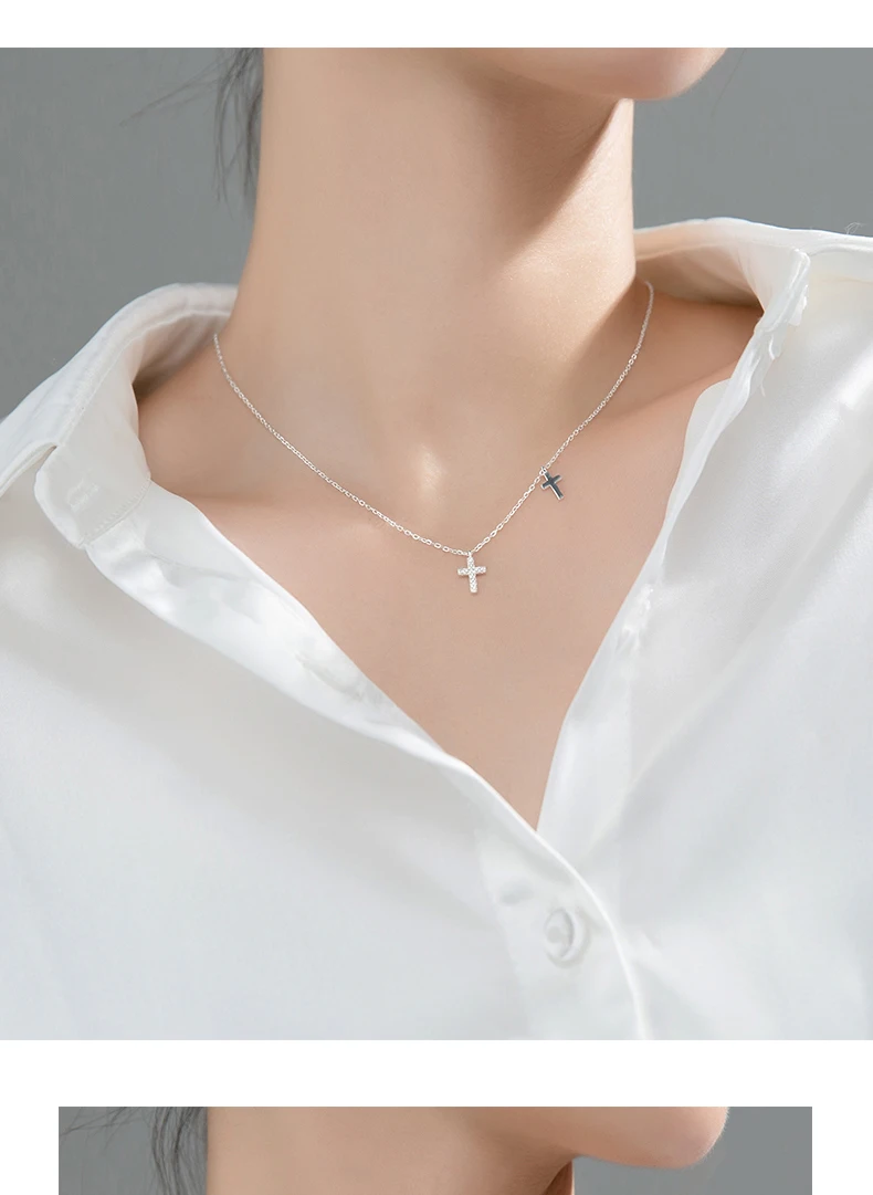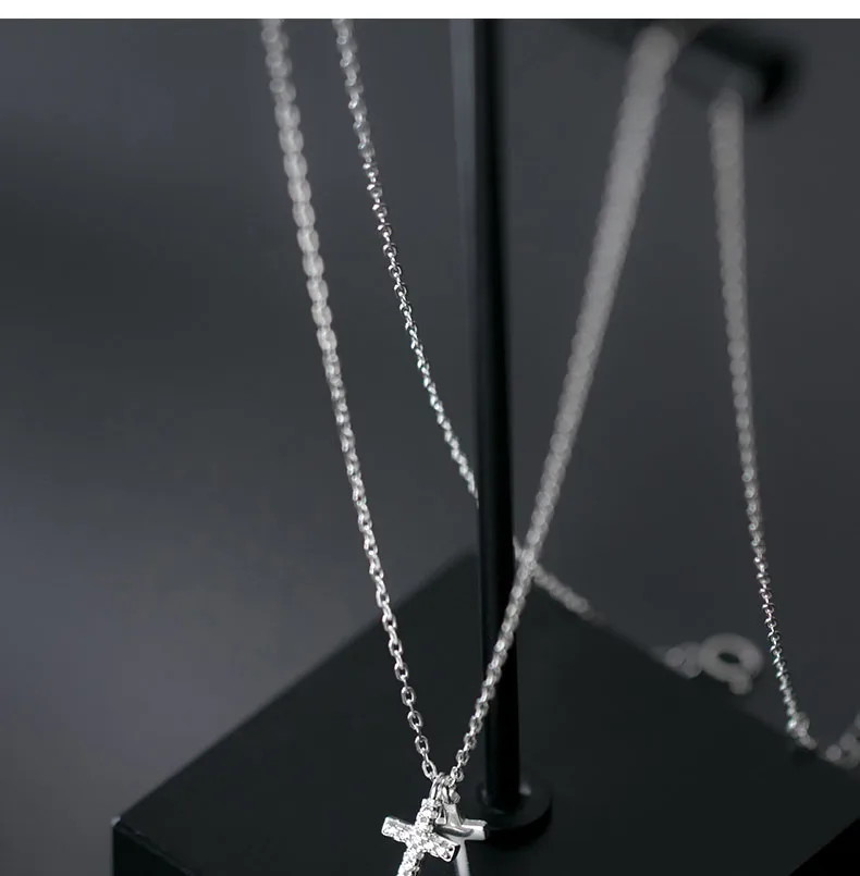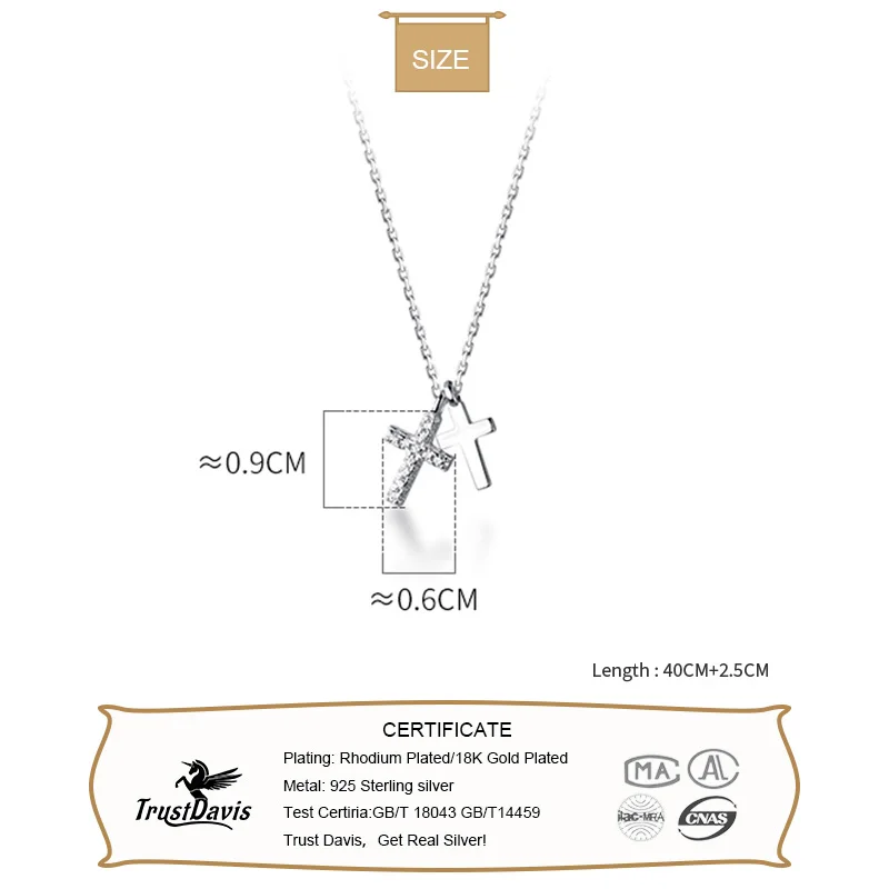 Trustdavis Real 925 Sterling Silver Fashion Double Cross CZ Pendant Short Clavicle Necklace For Women Wedding Fine Jewelry DA246