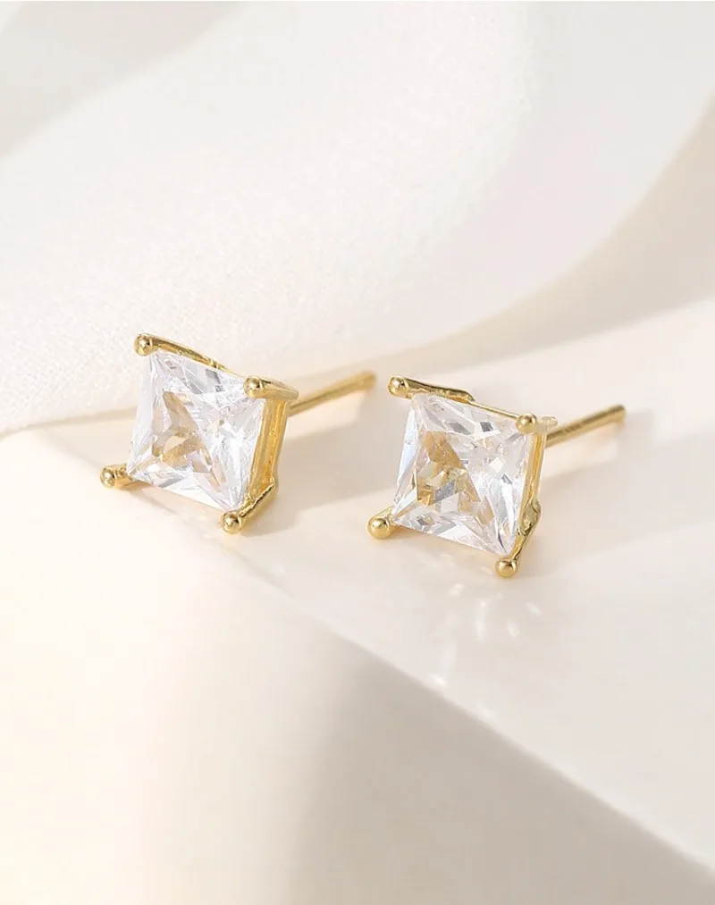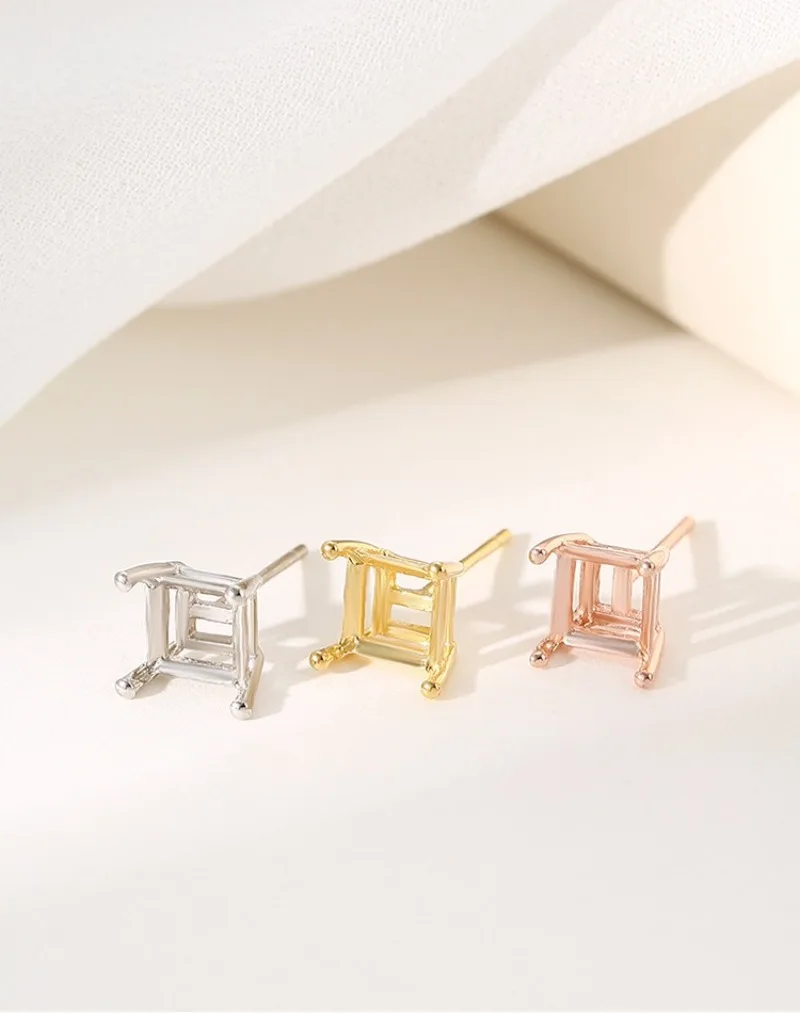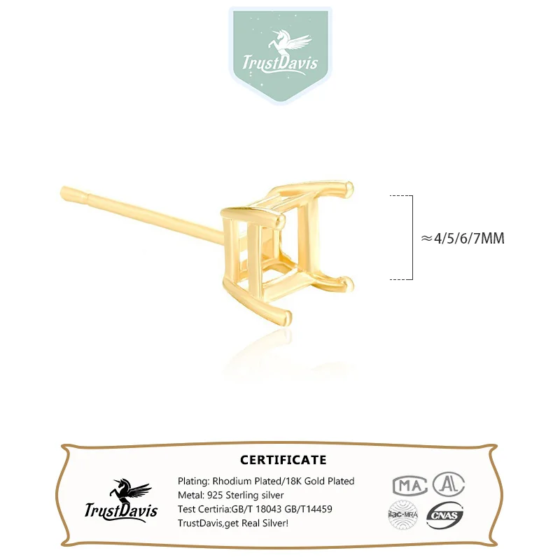 TrustDavis Real 925 Sterling Silver fashion Four clawed square earring ear rest Handmade DIY Accessories Wholesale DZ1761