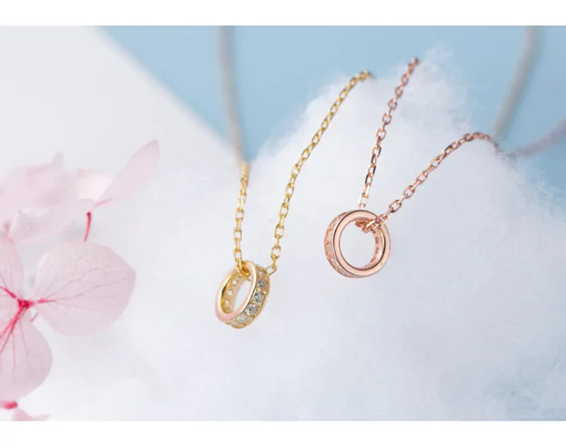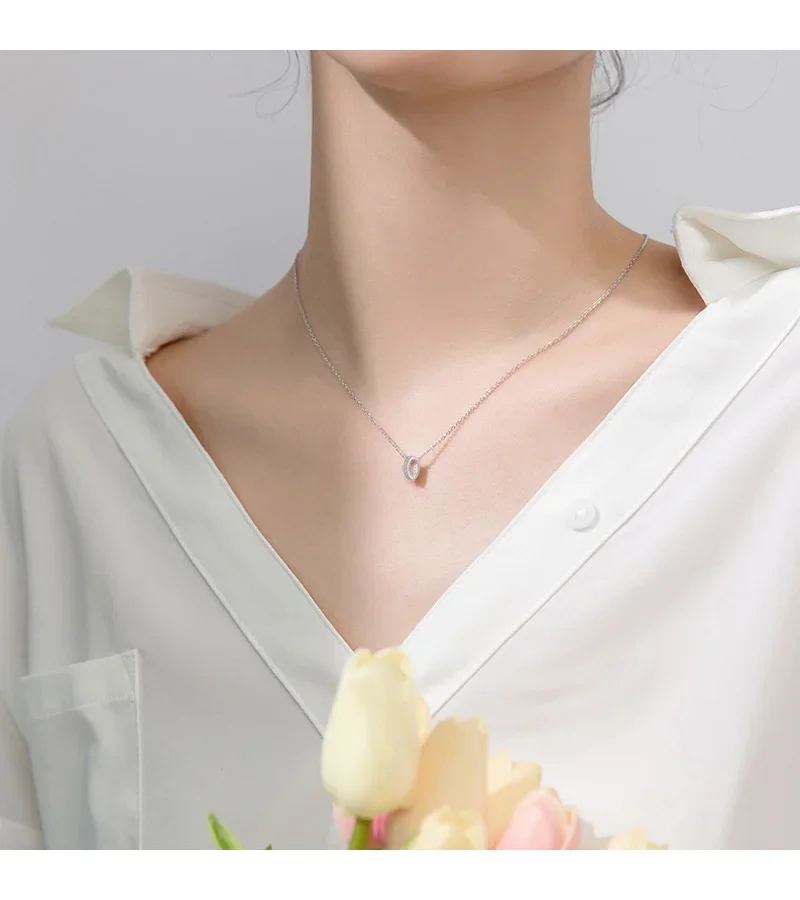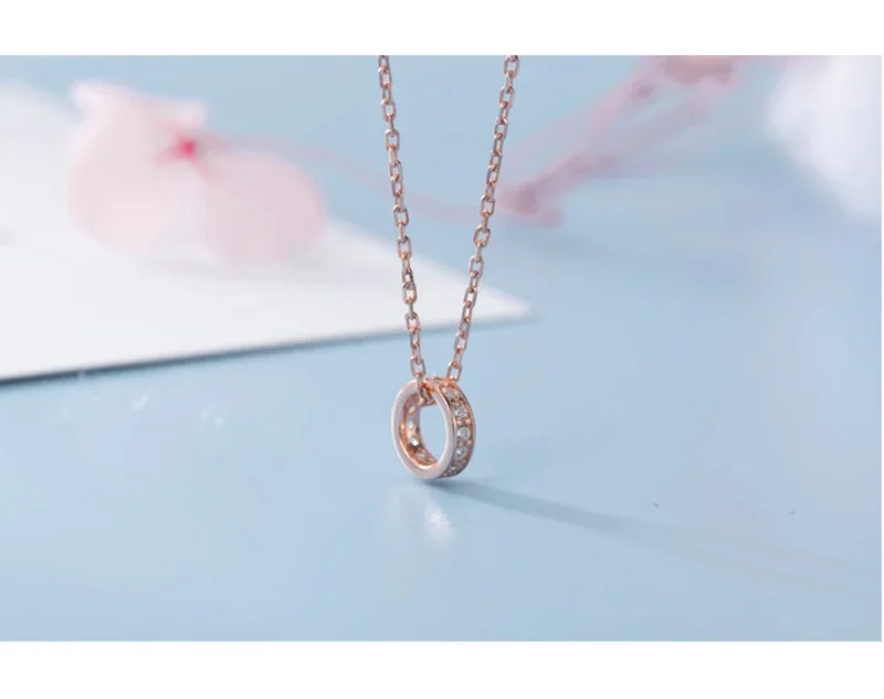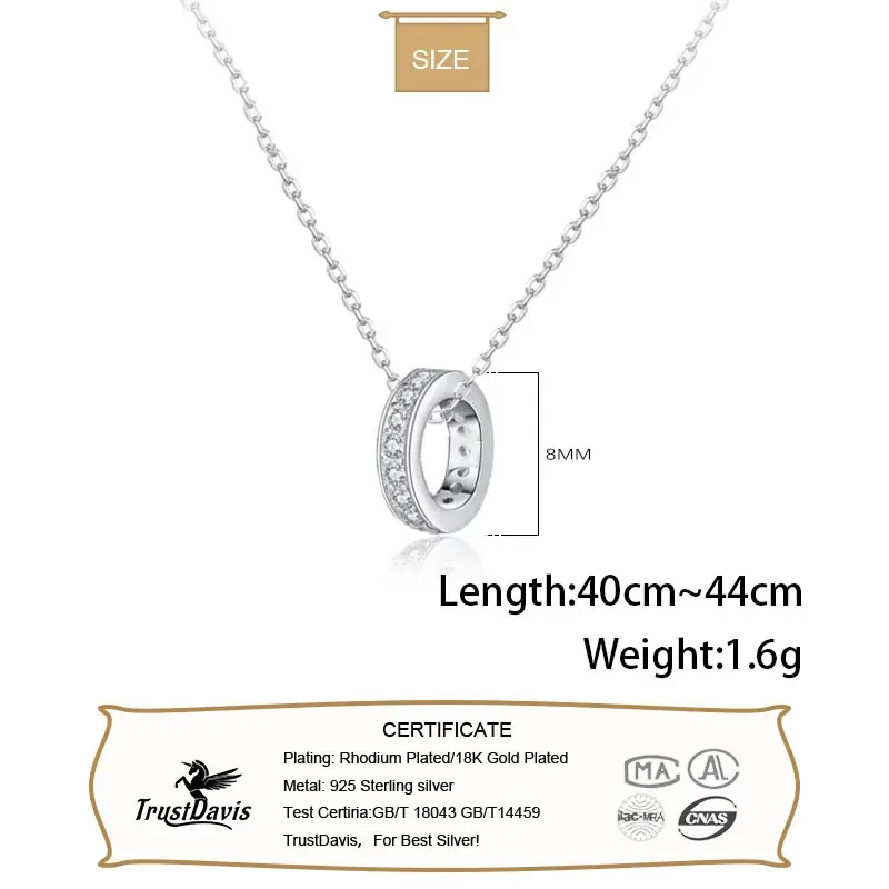 TrustDavis Real 925 Sterling Silver Fashion Geometric Circle Zircon Necklace For Women Wedding Statement Fine Jewelry Gift LB178
