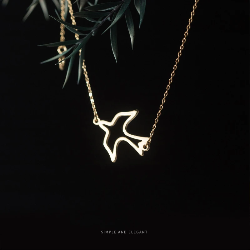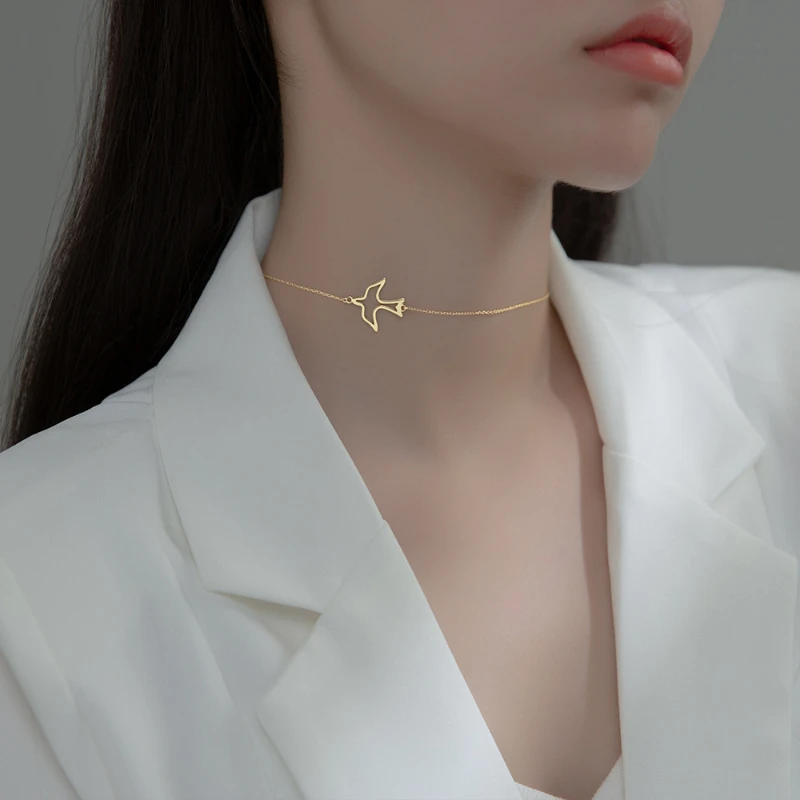 Trustdavis Real 925 Sterling Silver Fashion Gold Hollow Birds Clavicle Chain Necklace For Women Wedding Party Jewelry DA2705