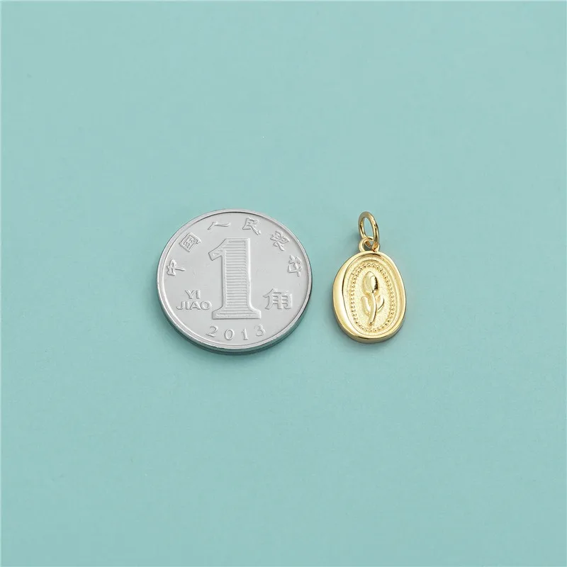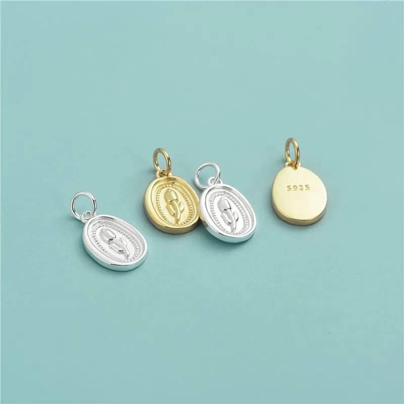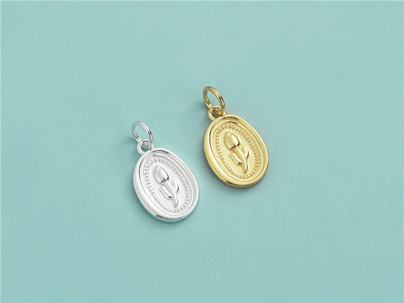TrustDavis Real 925 Sterling Silver Fashion Oval Tulip Charm Pendant Handmade DIY Accessories Fine Jewelry Wholesale DZ1739