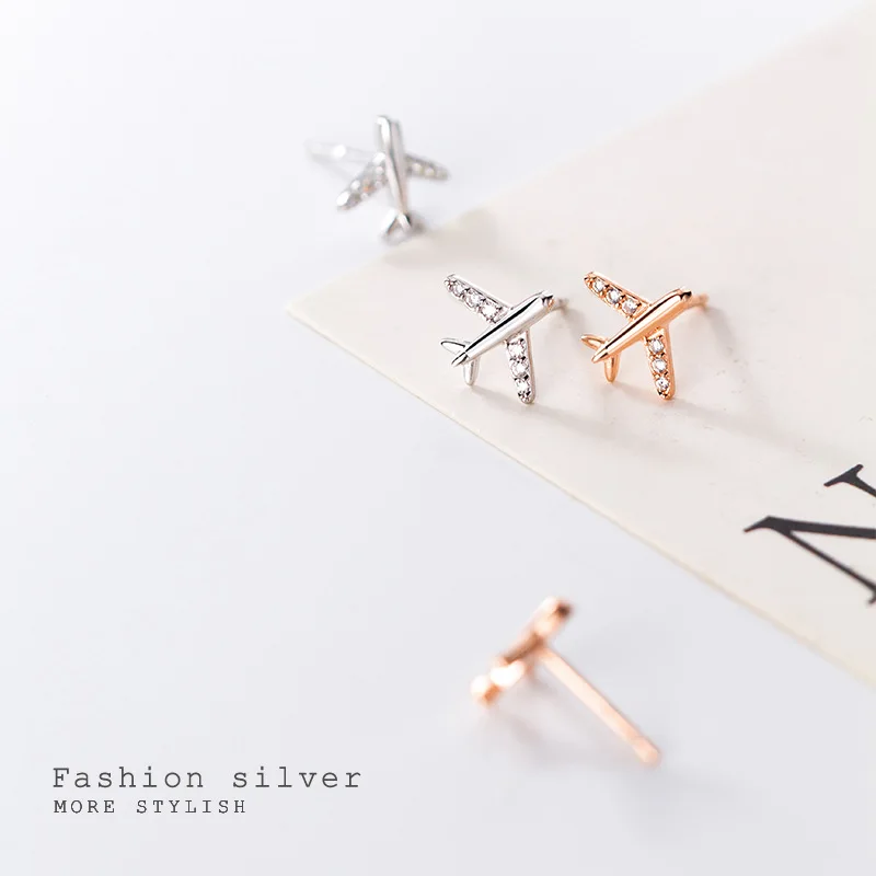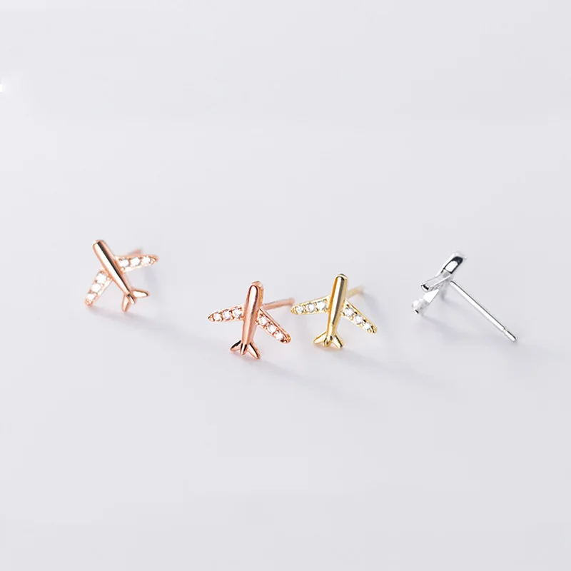 Fashion Pave Zircon Aircraft Airplane Stud Earring DA2692