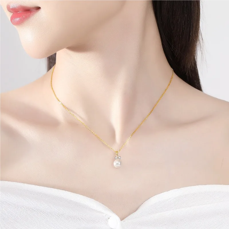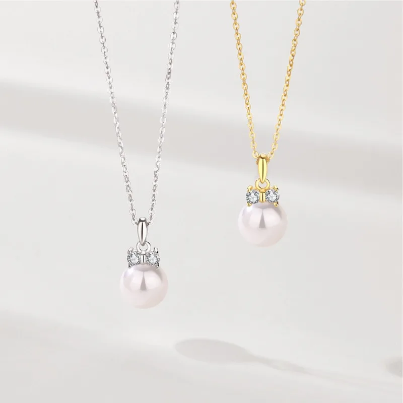 TrustDavis Real 925 Sterling Silver Fashion Simple Black and White Pearl Necklace for Women Girls Gift Fine Jewelry DS4737