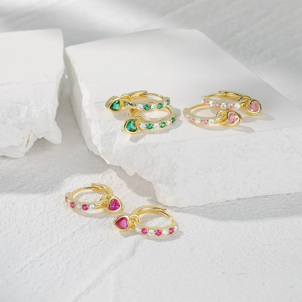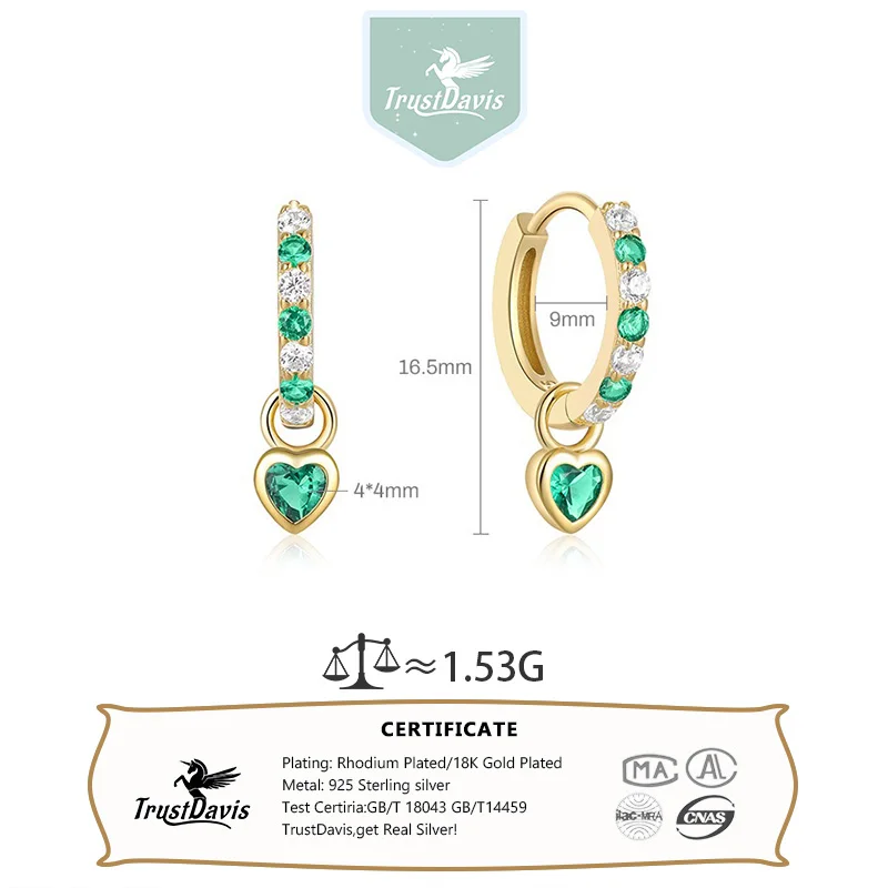 TrustDavis Real 925 Sterling Silver Fashion Simple Heart-shaped Earrings Zircon Love Earrings for Women Gift Jewelry DS4207