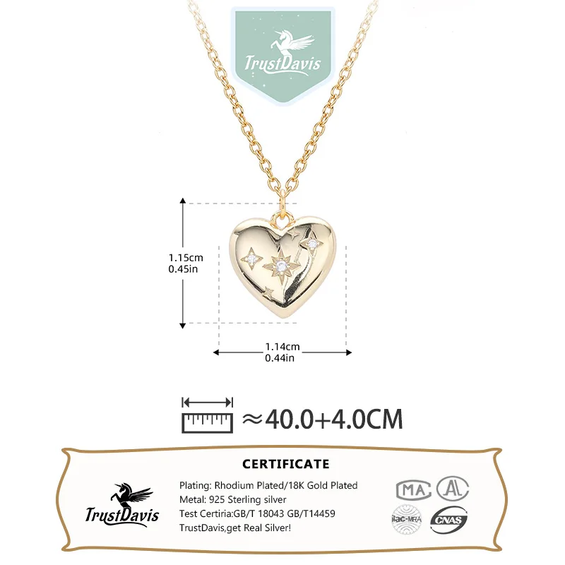 TrustDavis Real 925 Sterling Silver Fashion Simple Heart-shaped pendant necklace for Women Girls Gift Fine Jewelry DS4683