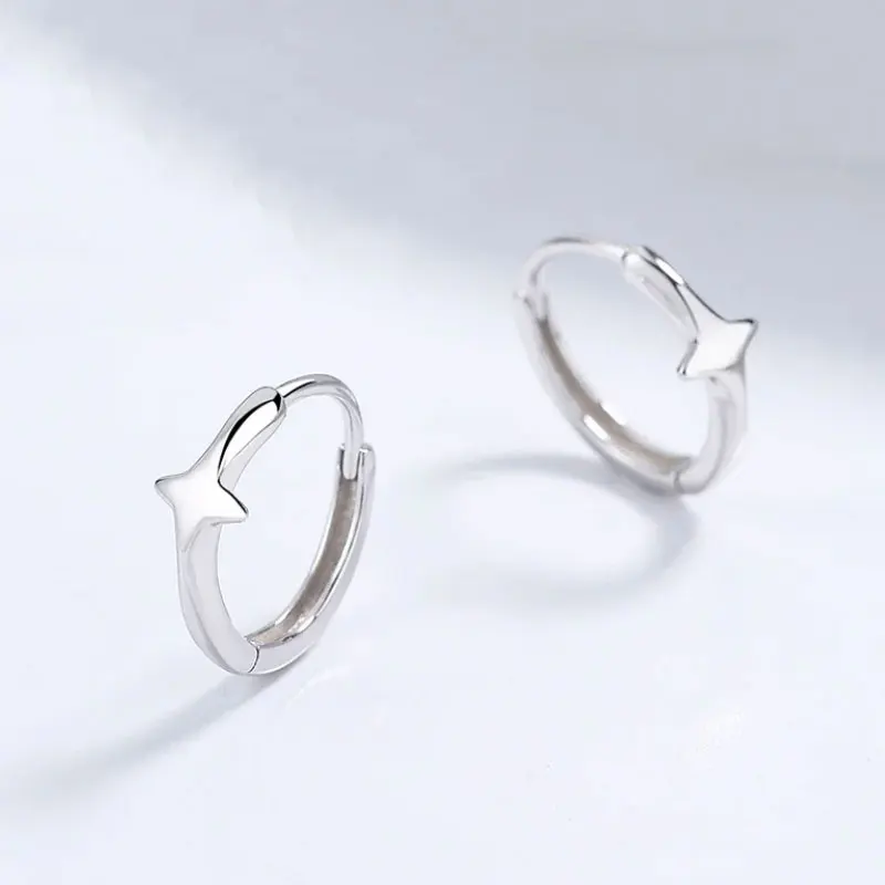 TrustDavis Real 925 Sterling Silver Fashion Simplicity Four Star Hoop Earring for Women Wedding Birthday Fine Jewelry DS4447