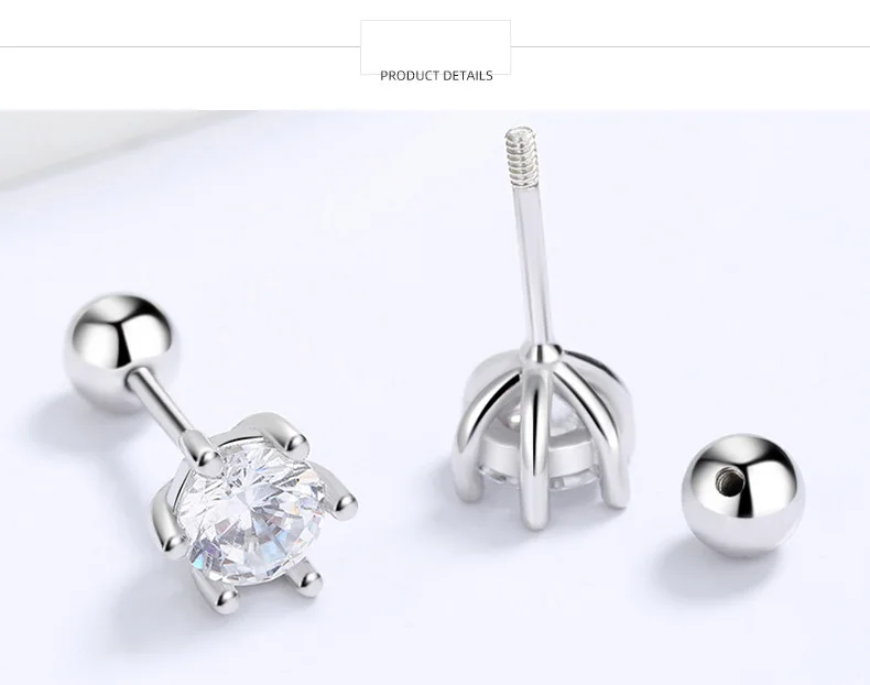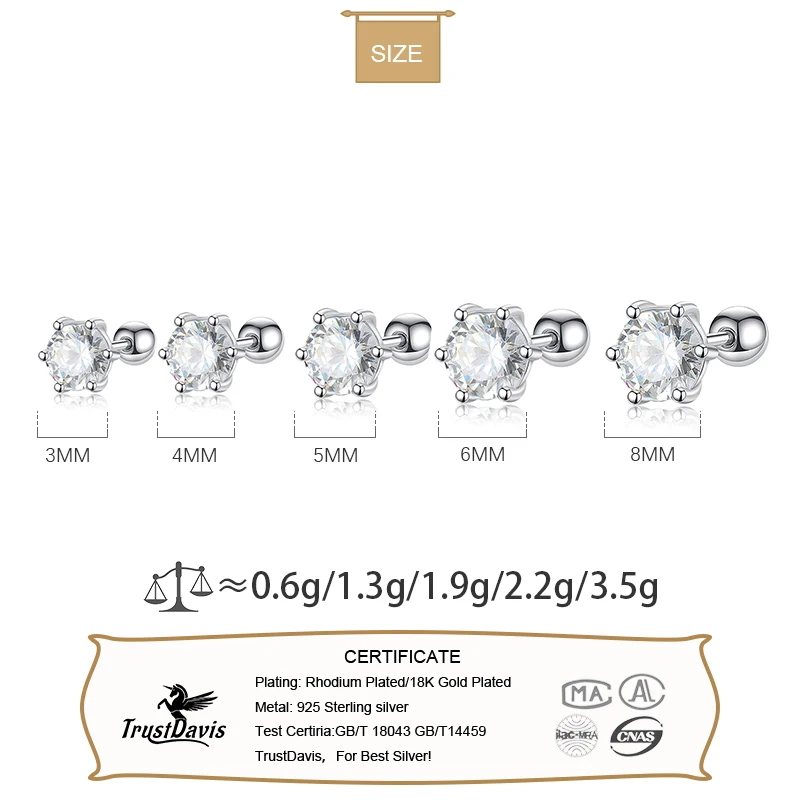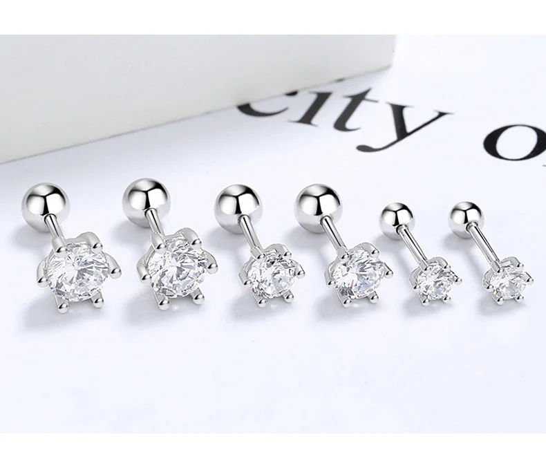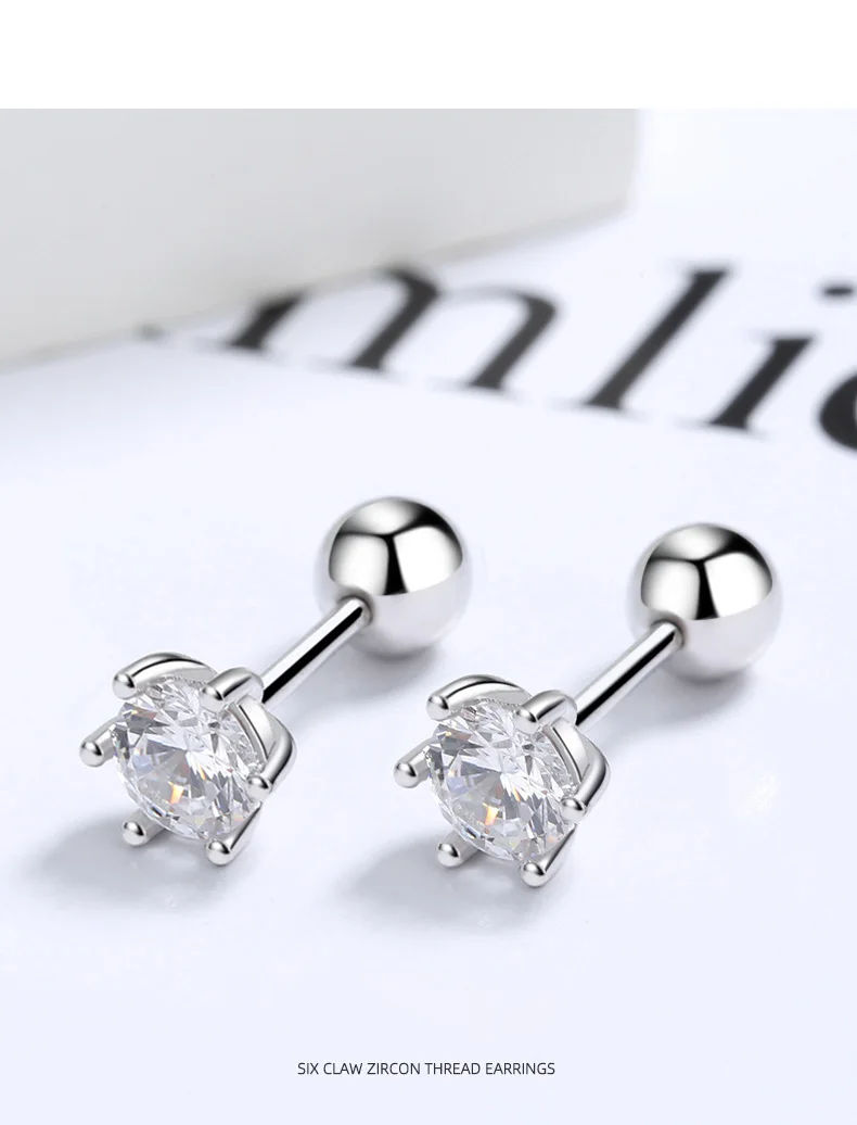 Six Claw 3/4/5/6/8mm CZ Screw Stud Earrings DA2268