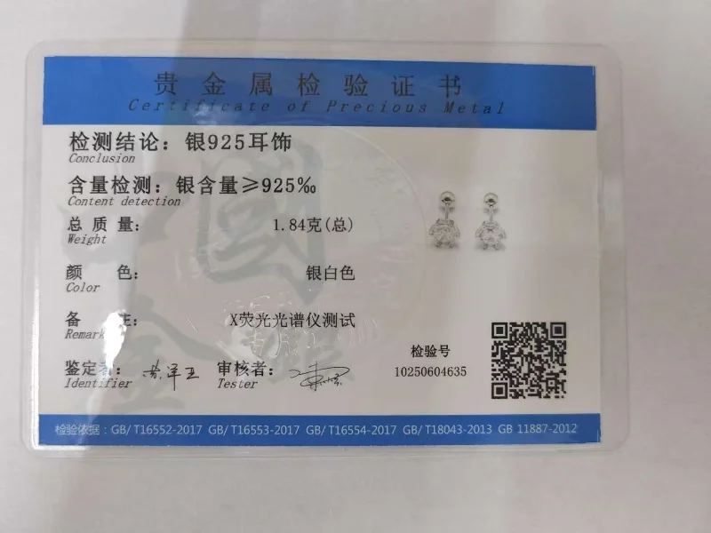 Metal contains 92.5% of silver