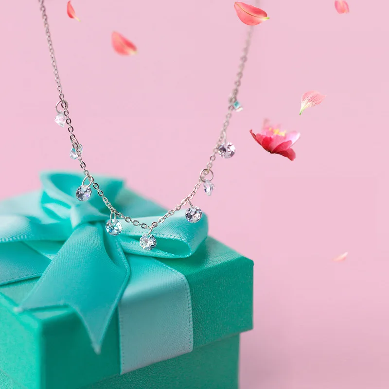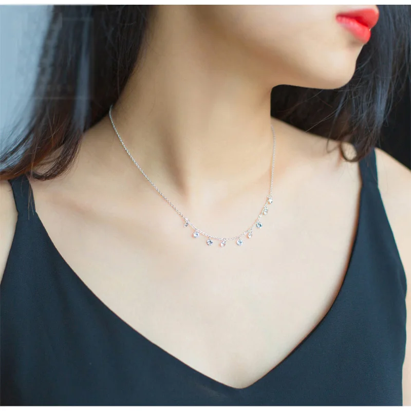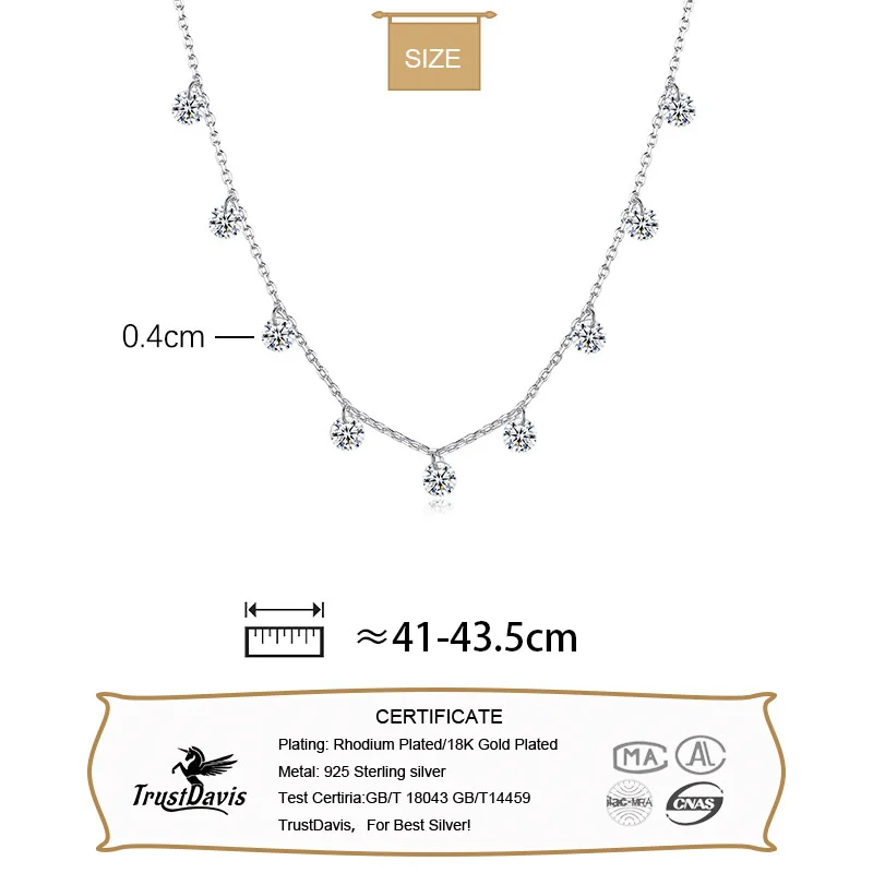 TrustDavis Real 925 Sterling Silver Fashion Sweet 4mm Dazzling CZ Charm Choker Necklace For Women Wedding Party Jewelry DA2718