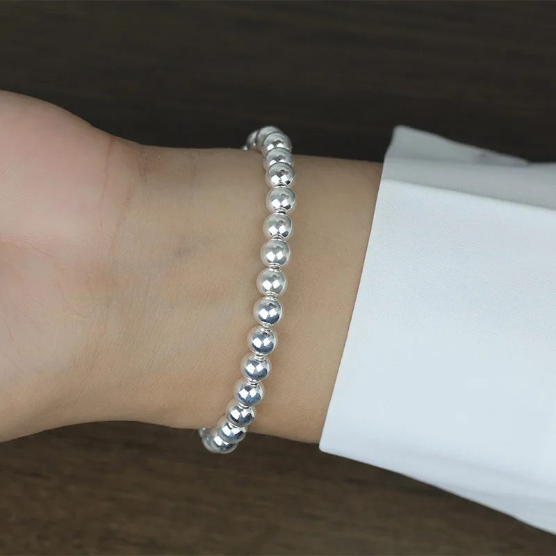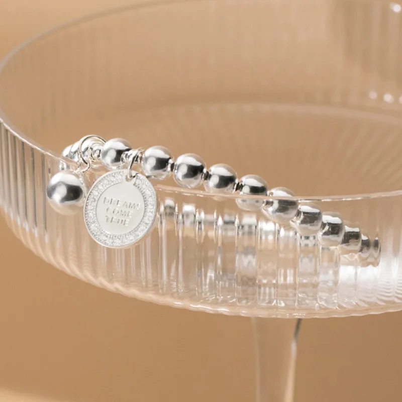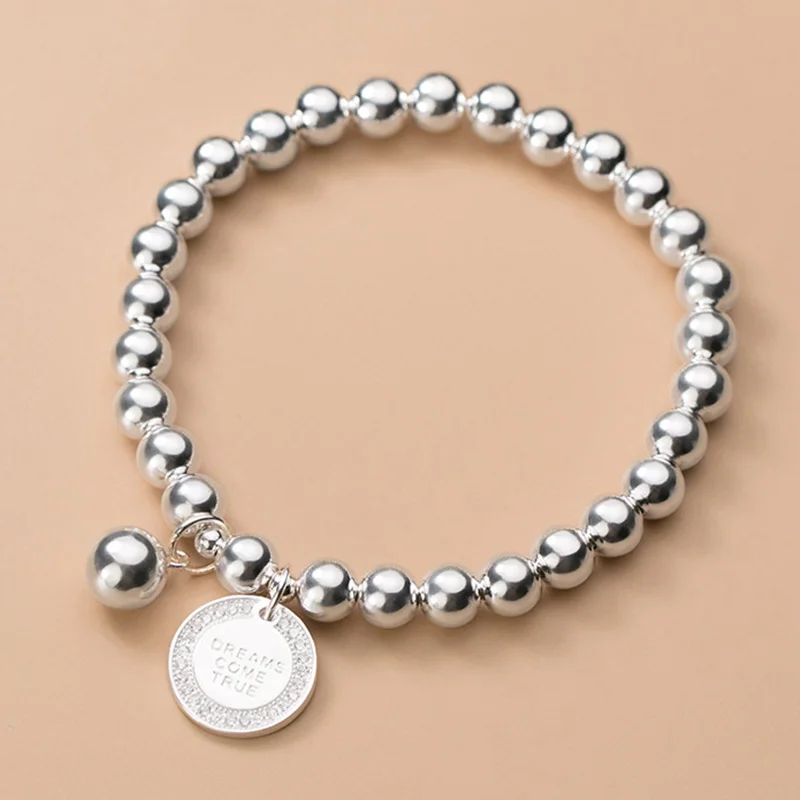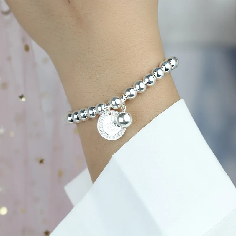 TrustDavis Real 925 Sterling Silver Fashion Sweet 6cm Beads Chain Coin CZ Bracelet Elastic For Women Mother's Day Jewelry DA2057