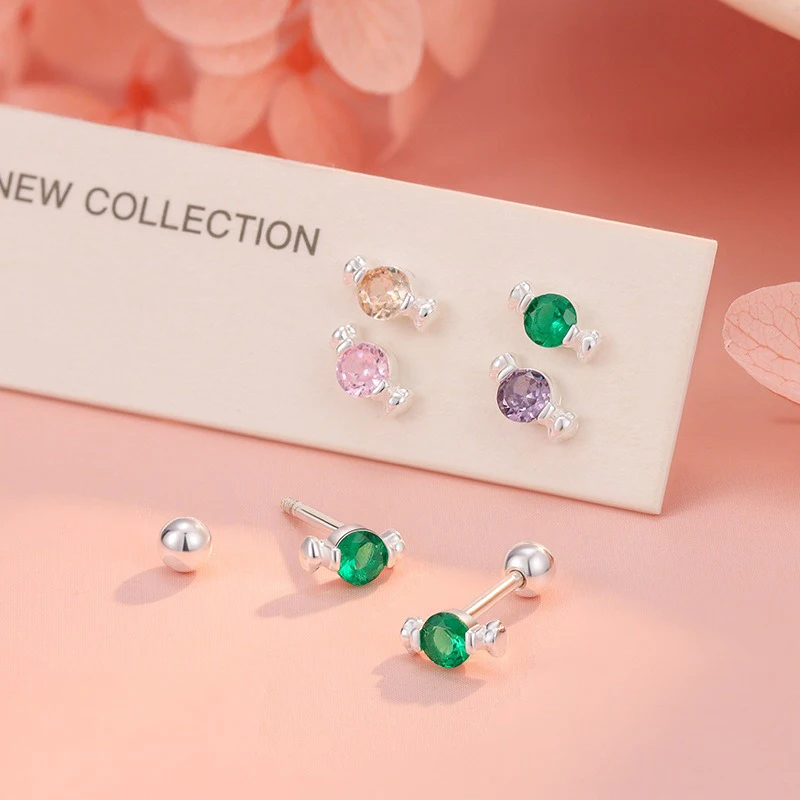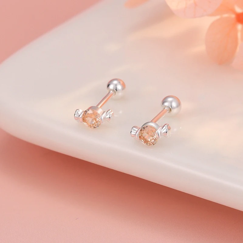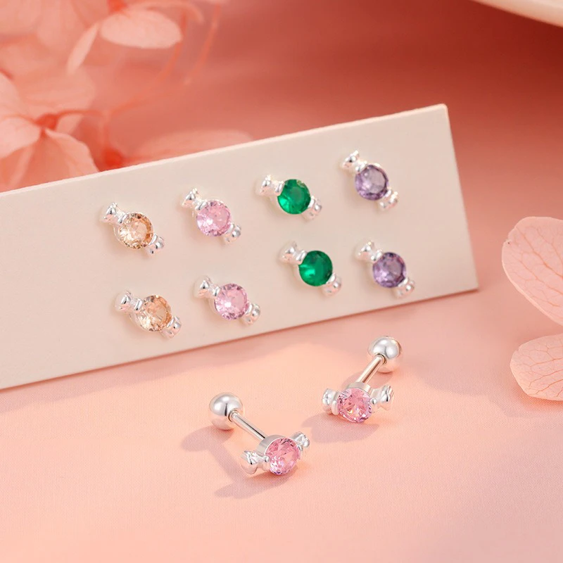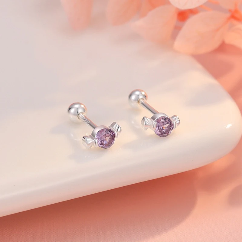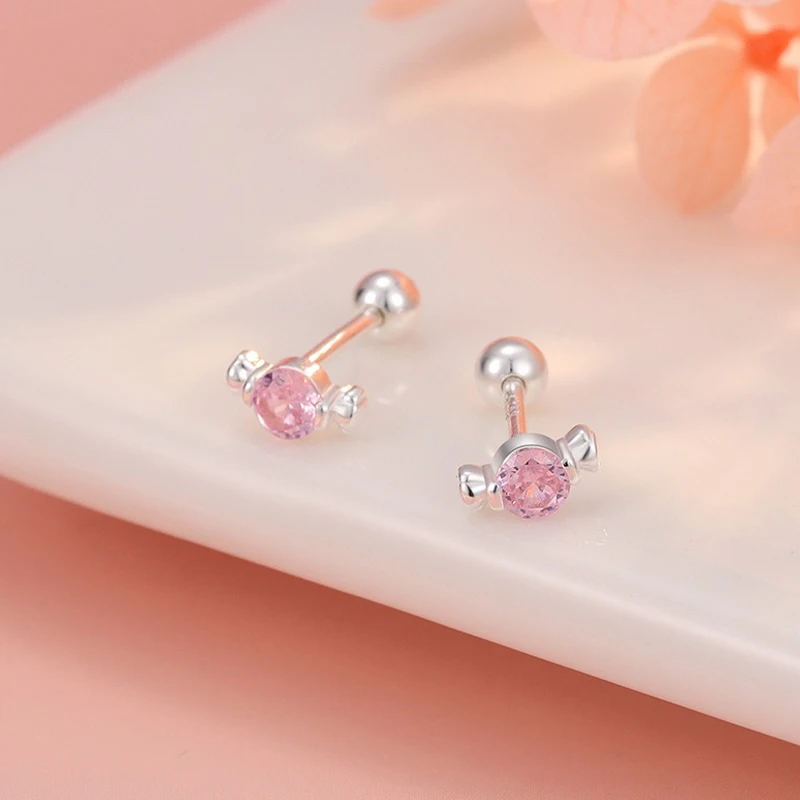 TrustDavis Real 925 Sterling Silver Fashion Sweet Cute Zirconia Candy Screw Earrings for Women Girls Jewelry Gift DS4712