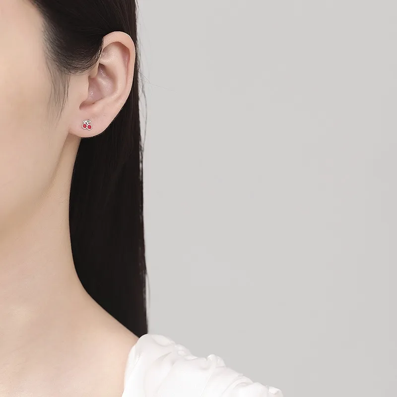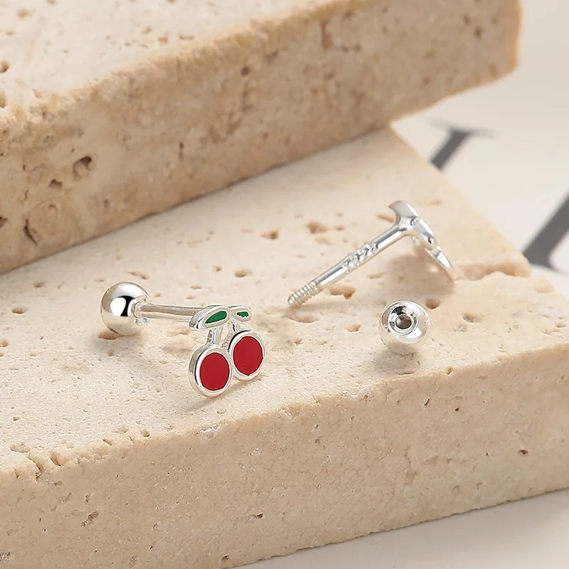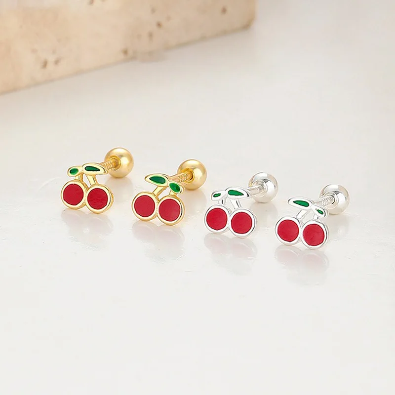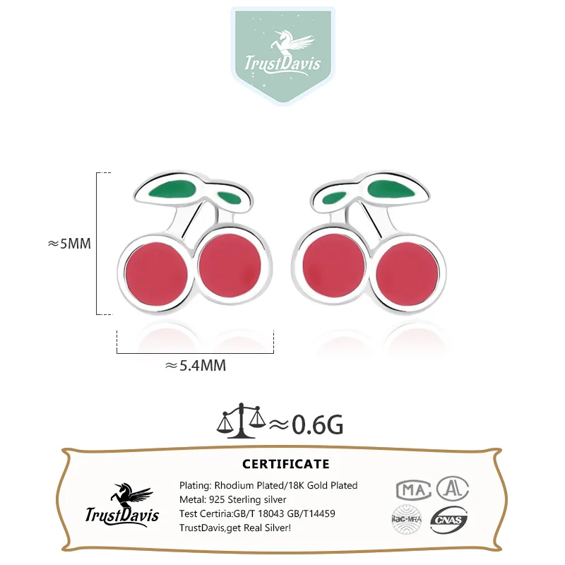 TrustDavis Real 925 Sterling Silver Fashion Sweet Cute Zirconia Cherry Screw Earrings for Women Girls Jewelry Gift DS4734