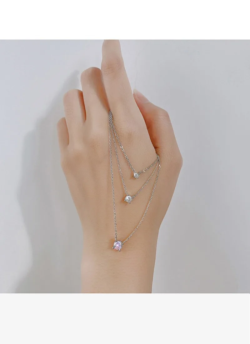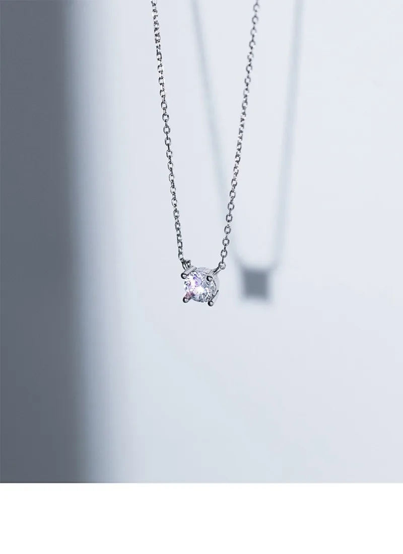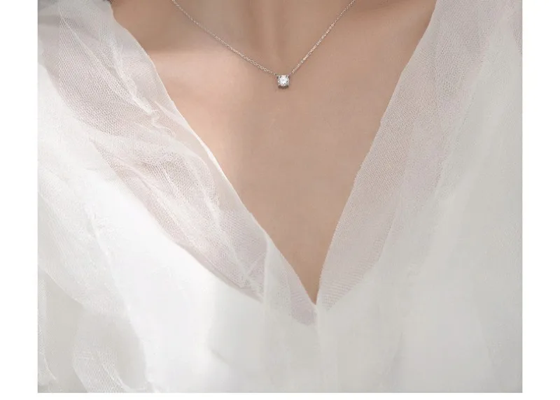 TrustDavis Real 925 Sterling Silver Fashion Sweet Four Clawed Diamond Inlay Necklace for Women Wedding Party S925 Jewelry DA1633
