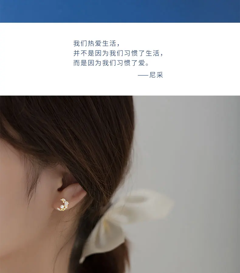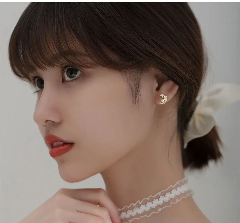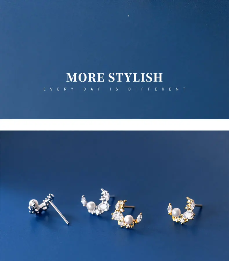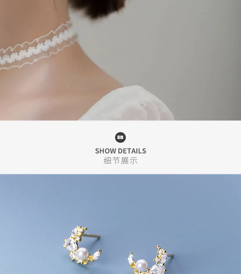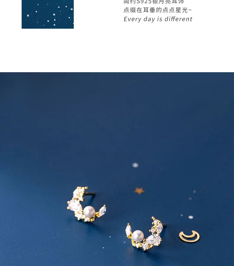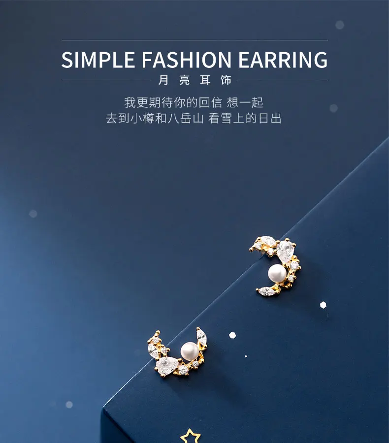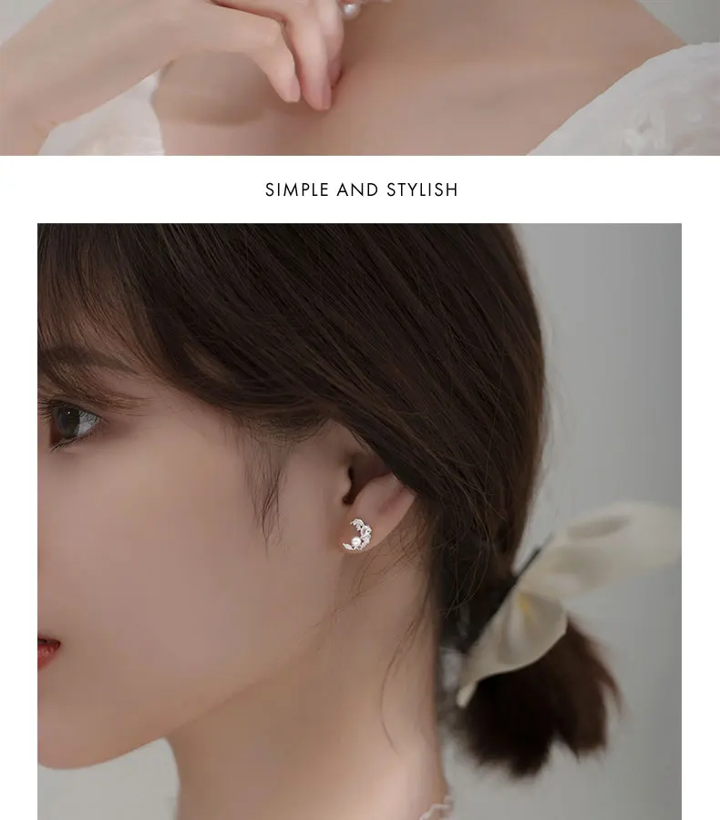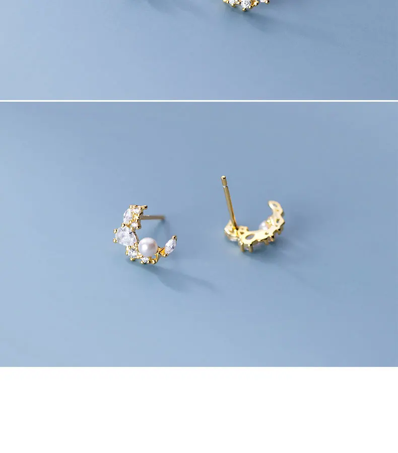 Fashion Sweet Moon Synthesis Pearl CZ Stud Earrings DB1097