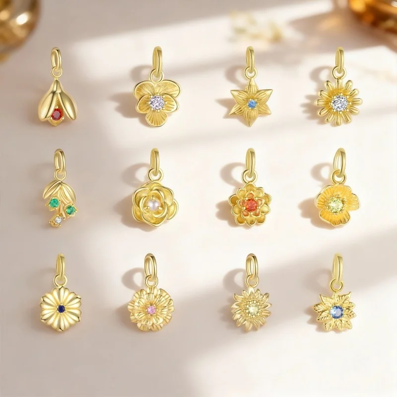 Trustdavis Real 925 Sterling Silver Feshion Simple 12 Months Birth Flower Pendant DIY for Women Girls Fine Jewelry DS4742