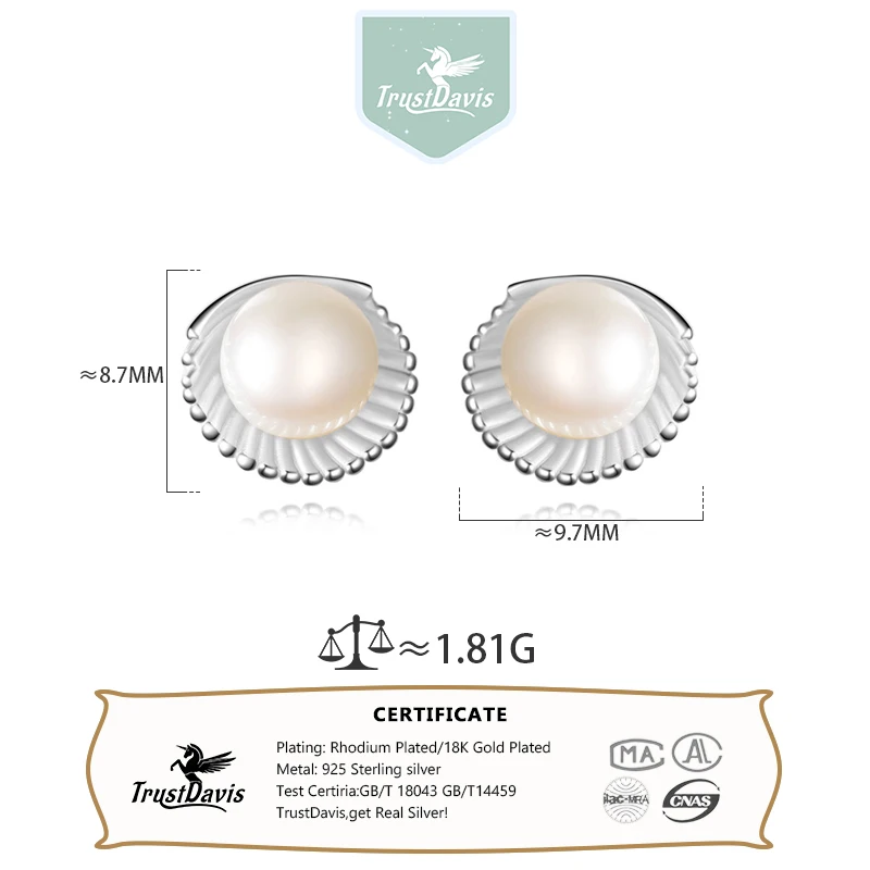 Trustdavis Real 925 Sterling Silver Fine Pearl Shells Screw Stud Earrings Women Daughter Birthday Party Gift Jewelry DS4327