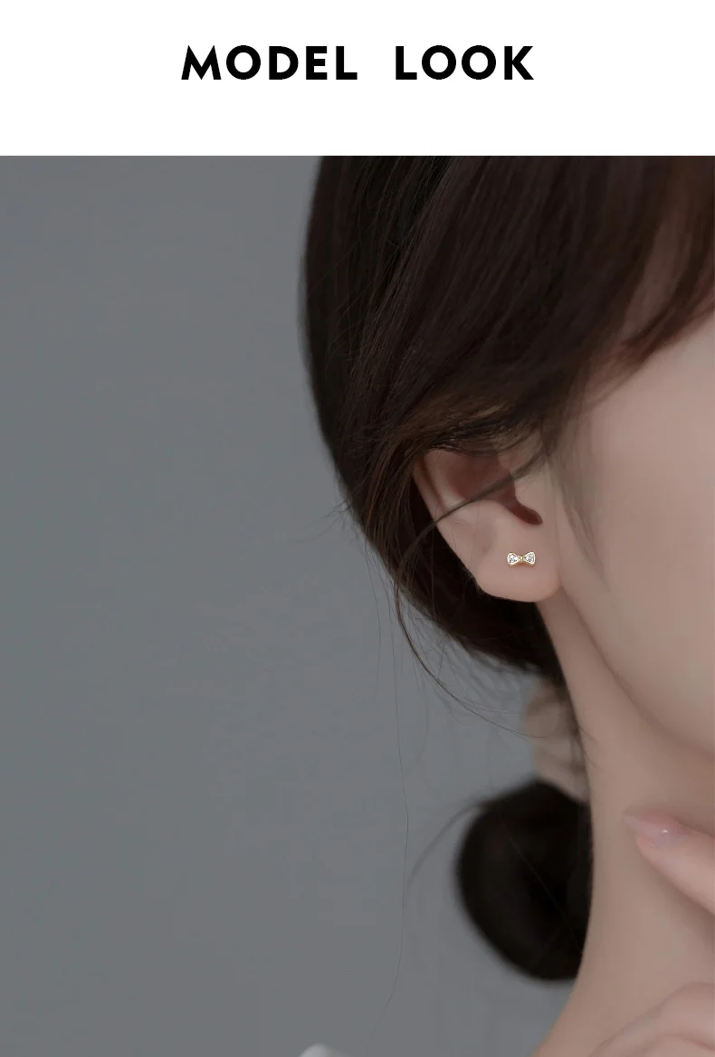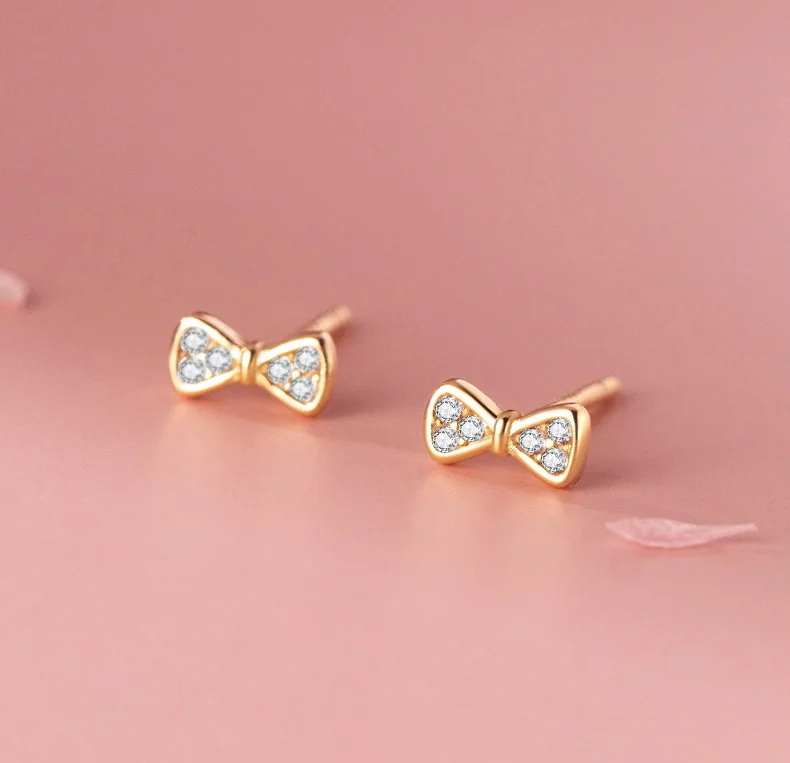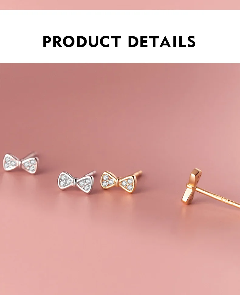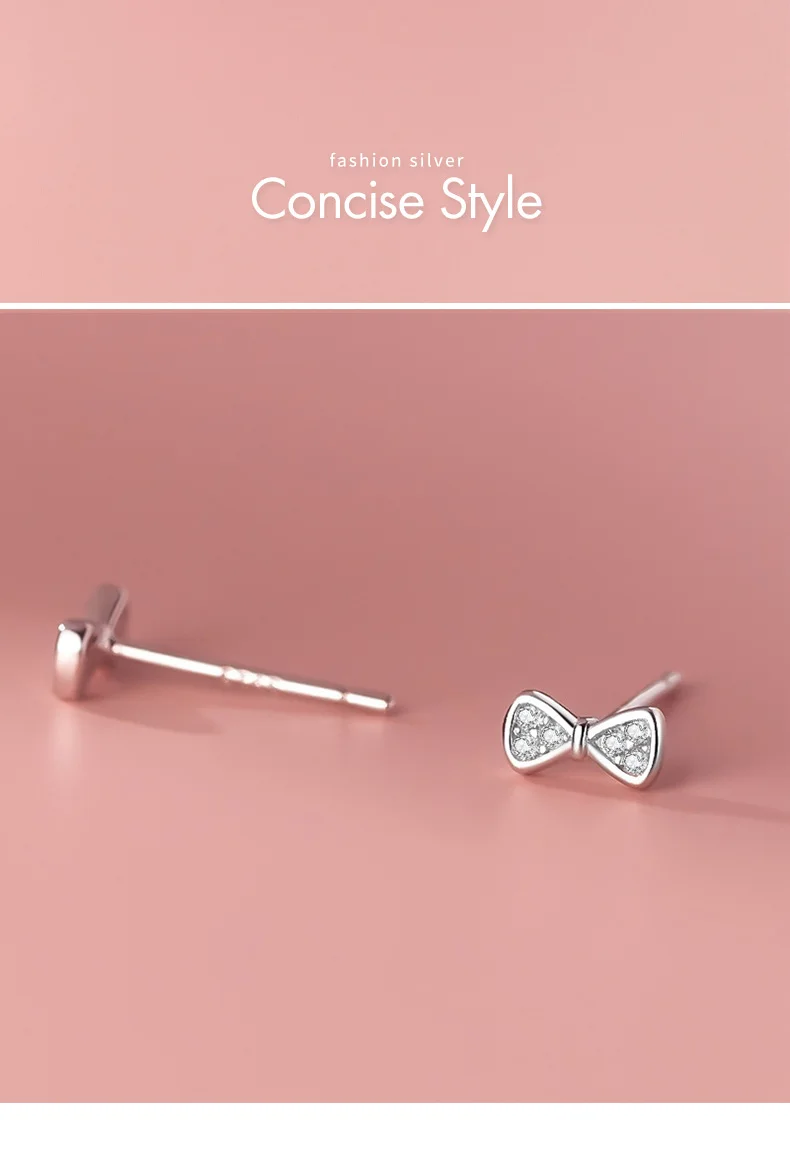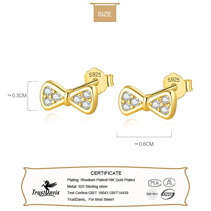 TrustDavis Real 925 Sterling Silver Girls Birthday Gift Earring Jewelry Sweet Bowkont Zircon Stud Earrings for Xmas DS3502