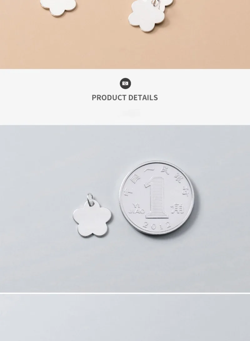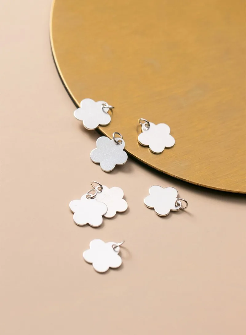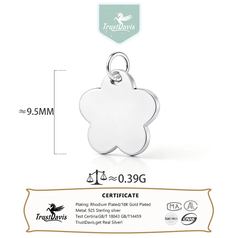 TrustDavis Real 925 Sterling Silver Glossy Flower Charm Pendant for Making Necklace Handmade DIY Accessories Fine Jewelry DZ1804