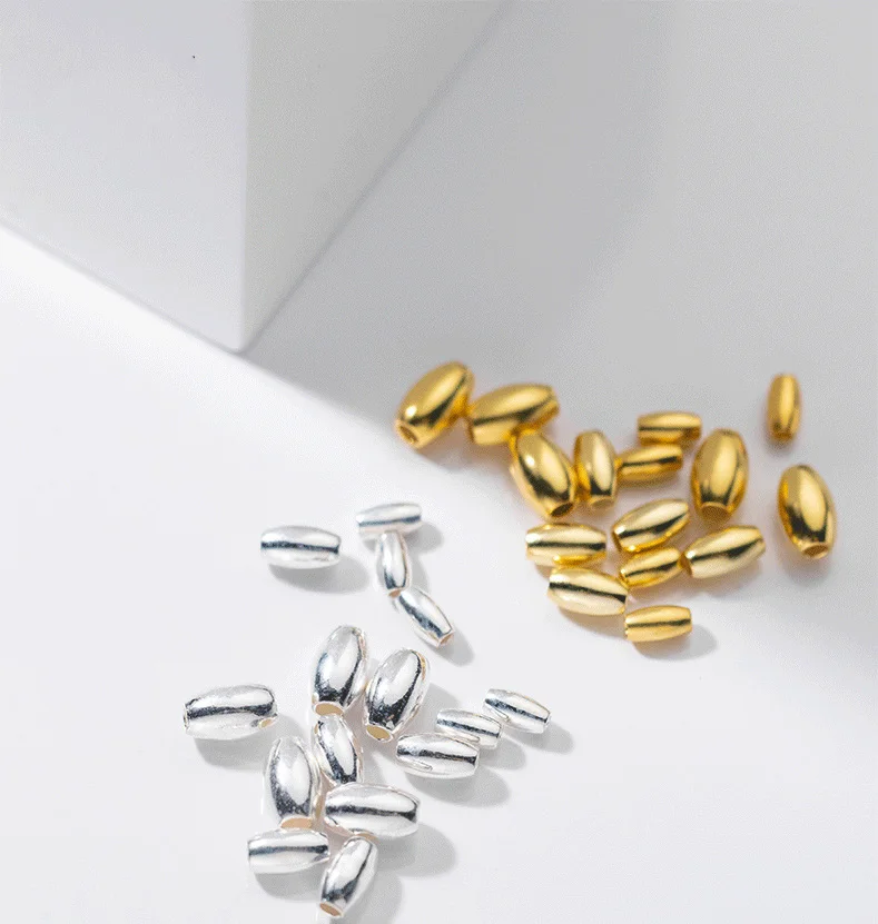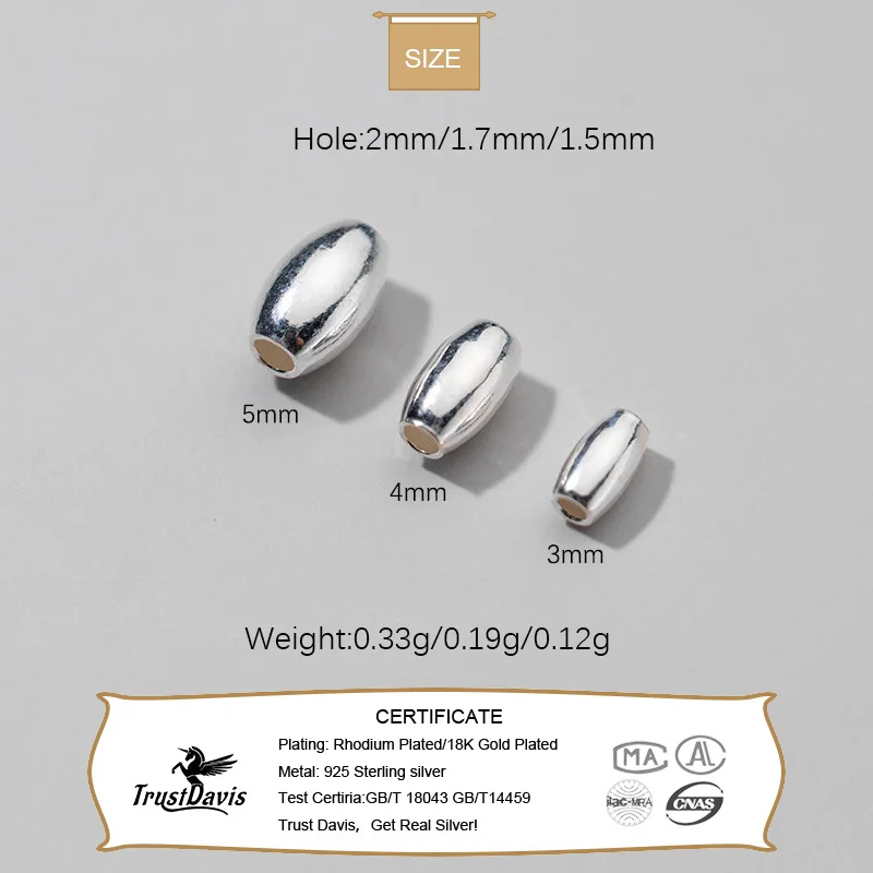 TrustDavis Real 925 Sterling Silver Glossy Olive Beads Separator Beads DIY Fit Bracelet Necklace Accessories Fine Jewelry HY985