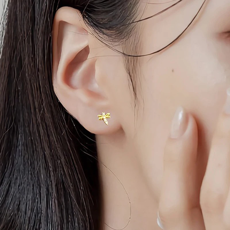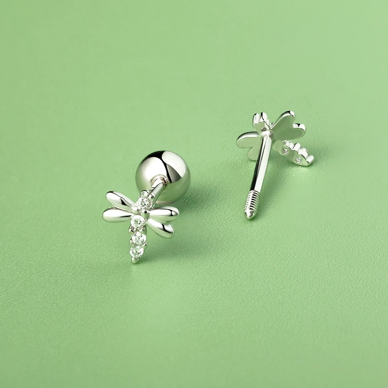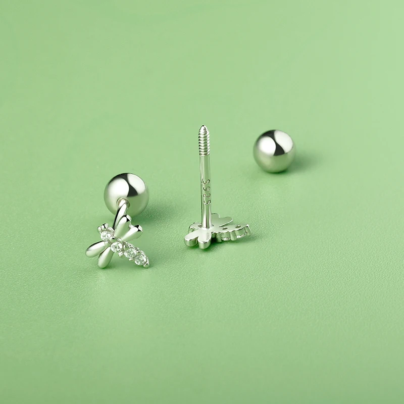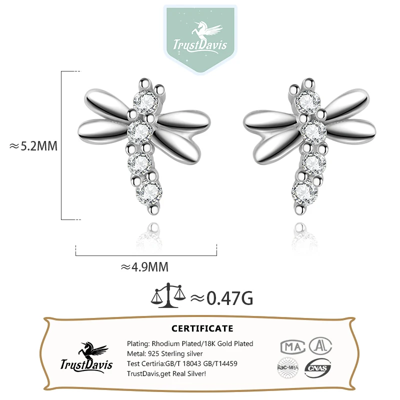 TrustDavis Real 925 Sterling Silver Insect Dragonfly CZ Screw Stud Earrings For Women Girls Fashion Fine Jewelry Gift DS4619