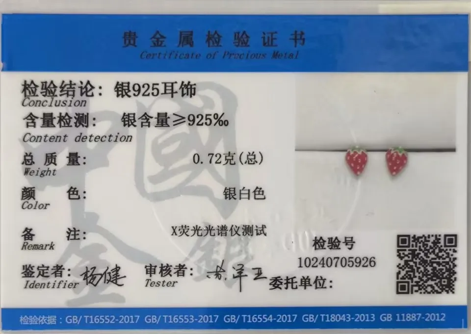 TrustDavis Real 925 Sterling Silver Lovely Strawberry Stud Earrings Birthday Gift For Girls School Party Silver Jewelry DS3450