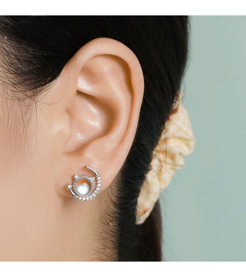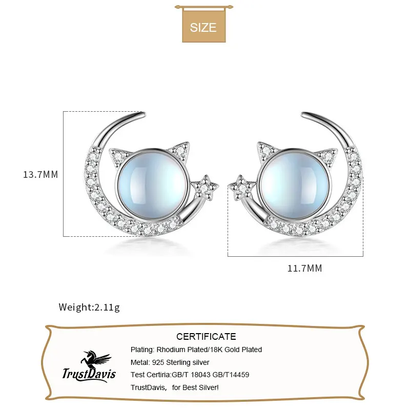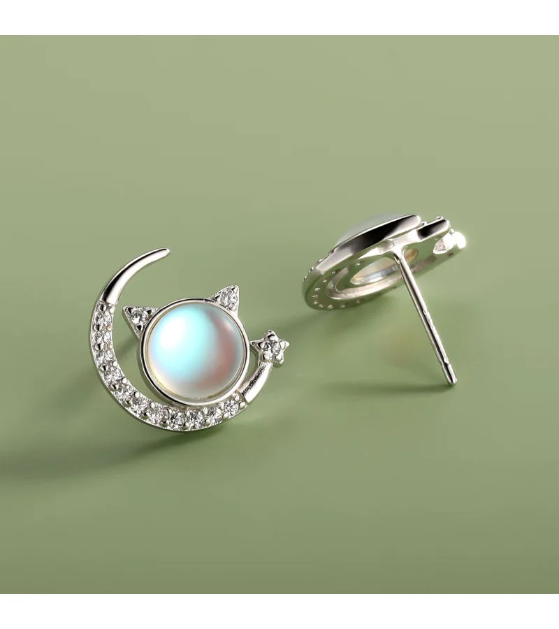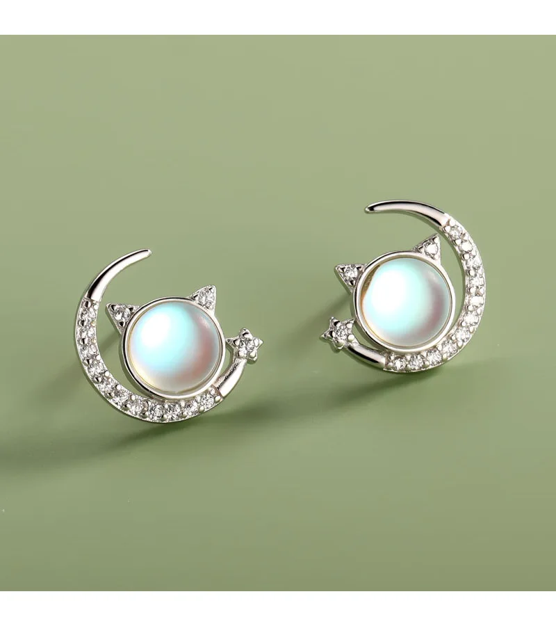 Moon Cat Moonstone Dazzling CZ Stud Earring DA2917