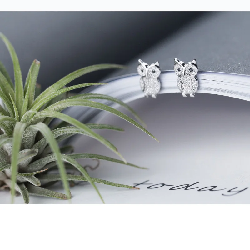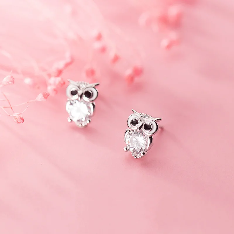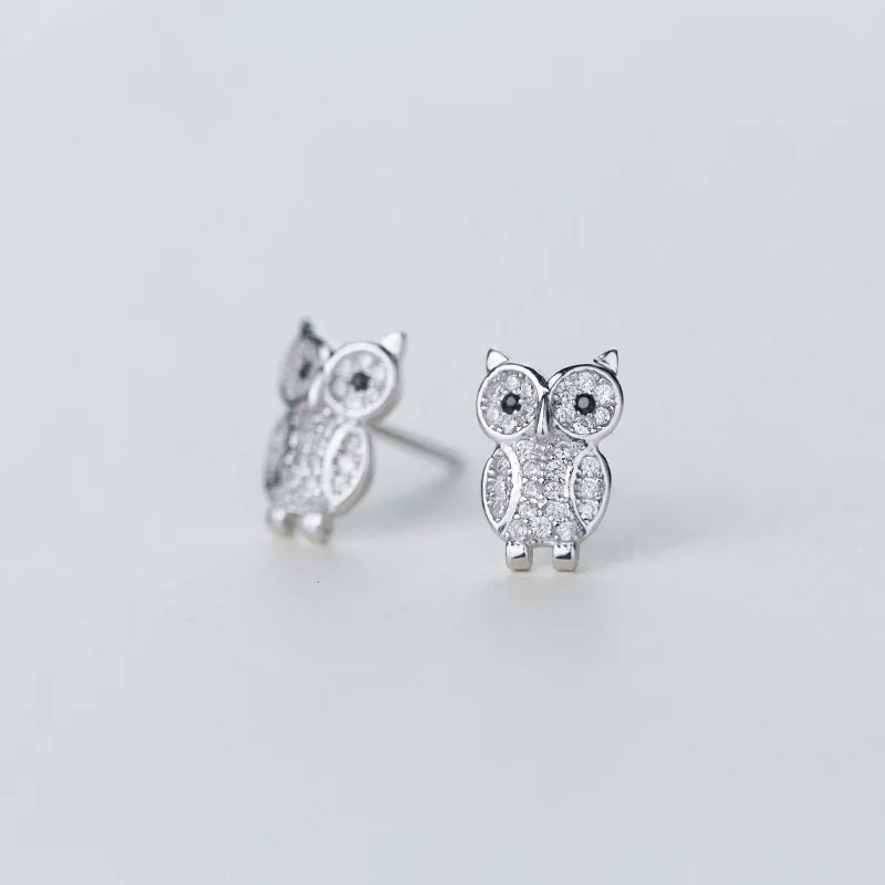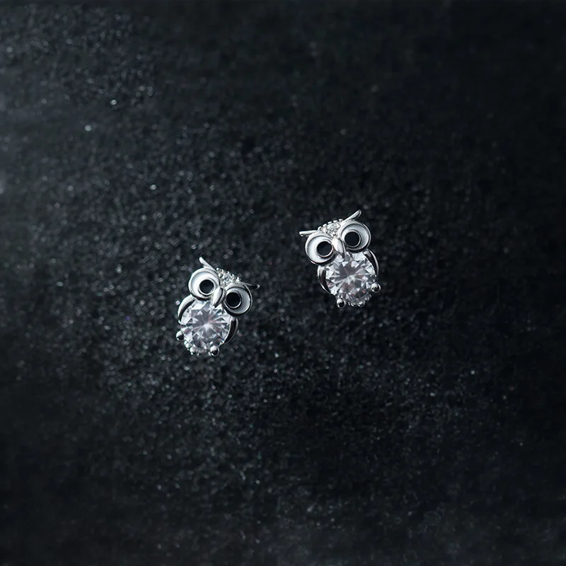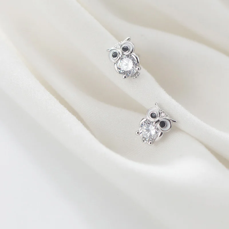 Shiny CZ Stone Owl Stud Earrings DS2006