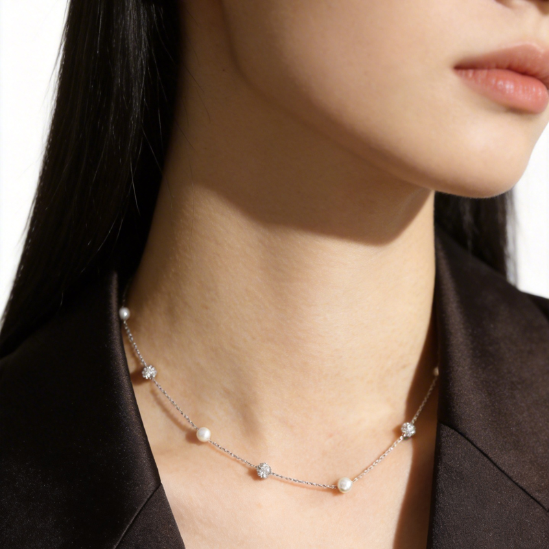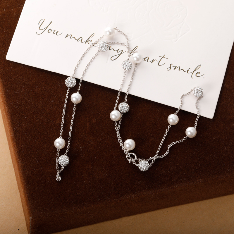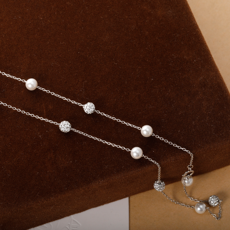 TrustDavis Real 925 Sterling Silver Pearl Ball CZ Tassel Choker Necklace For Women Gift Fine Jewelry DA2337